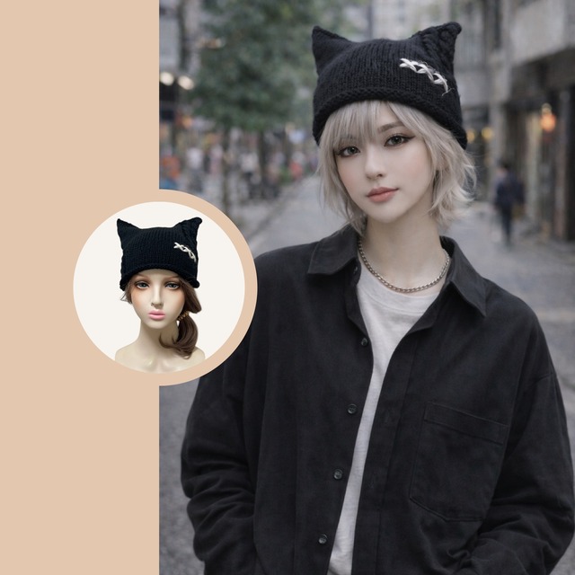 大人の猫耳ニット帽④