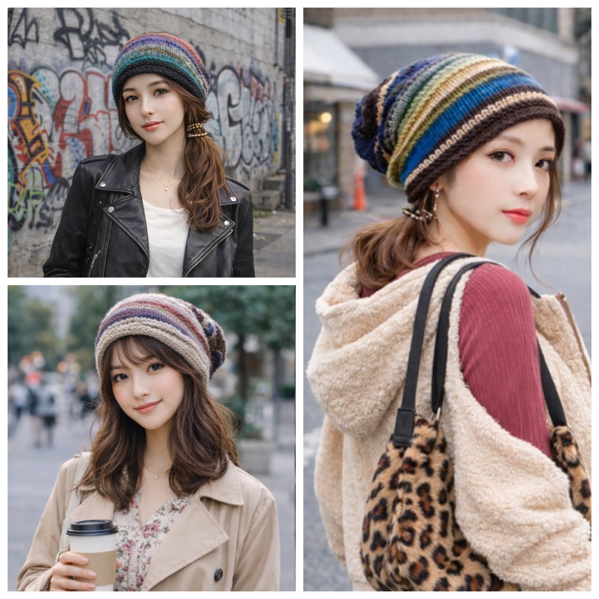 配色で魅せる一点モノニット帽