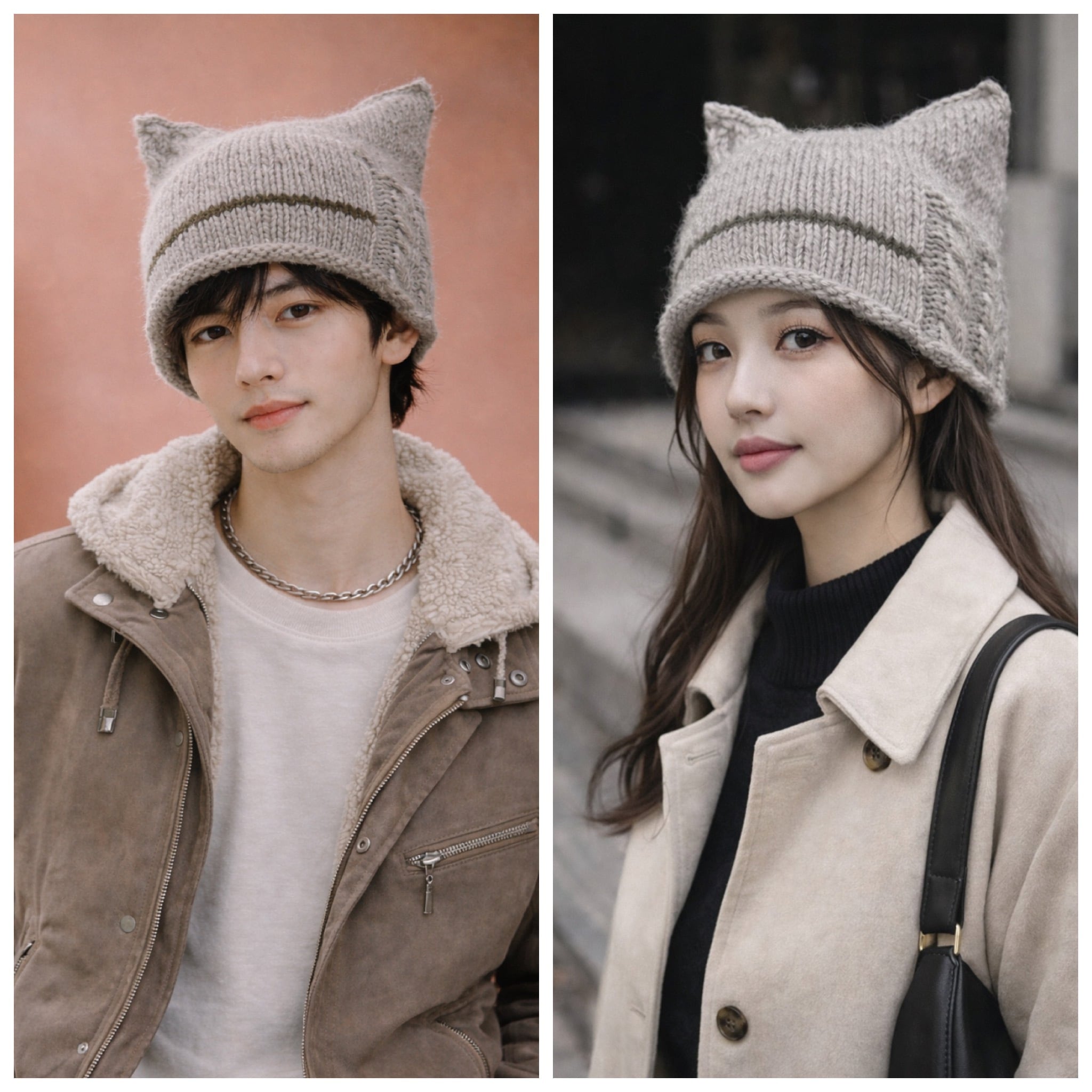 猫耳だけど、甘くならない。 大人の服に自然になじむ、ユニセックスのネコ耳ニット帽です。 クリームホワイト+ベビーグレーMIXをベースに、ボルドーのラインを入れて落ち着いた印象に。 さりげない猫耳なので「可愛い」よりも“雰囲気”で被れるデザイン。 シンプルな冬コーデのアクセントにおすすめです。 【こんな方におすすめ】 • 普通のニット帽だと物足りない • さりげなく遊び心を入れたい • メンズ・ユニセックスで被れる帽子を探している • ストリート/アウトドア/古着MIXが好き 【こだわりポイント】 • 甘くならない配色で大人っぽく • 被るだけでコーデが決まる存在感 • ふんわり立体感のある編み目であたたかい • 1点ずつ丁寧に手編みしています 【サイズ・素材・カラー・お手入れ】 サイズ: 頭囲 約45〜60cm(伸縮性あり) 奥行き 約20cm 素材:ウール カラー :クリームホワイト+ベビーグレーMIX(模様編み入り) ボルドー(ライン) お手入れ: 手洗い推奨/平干しで形を整えて乾燥 【ご購入前に】 • 1点ずつ手作業のため、編み目やサイズにわずかな個体差があります。 • できるだけ実物に近い色味になるよう撮影していますが、画面環境により見え方が異なる場合があります。 【受注制作について】 こちらは受注制作も可能です。 ※使用するベース糸の在庫に限りがあるため、受付数には上限があります。 ※ラインの糸色はご相談可能です。 在庫がなくなり次第、受注受付を終了いたします。 【発送について】 こちらは【即納】商品です。 在庫がない場合は、受注制作にてお作りし、1週間ほどお時間をいただきます。 準備が整い次第発送いたします。 #猫耳ニット帽 #ネコ耳帽子 #大人猫耳 #ニット帽 #手編みニット #ハンドメイド帽子 #ウールニット #冬帽子 #秋冬アイテム #ユニセックス #シンプルファッション #大人カジュアル #一点もの #受注制作