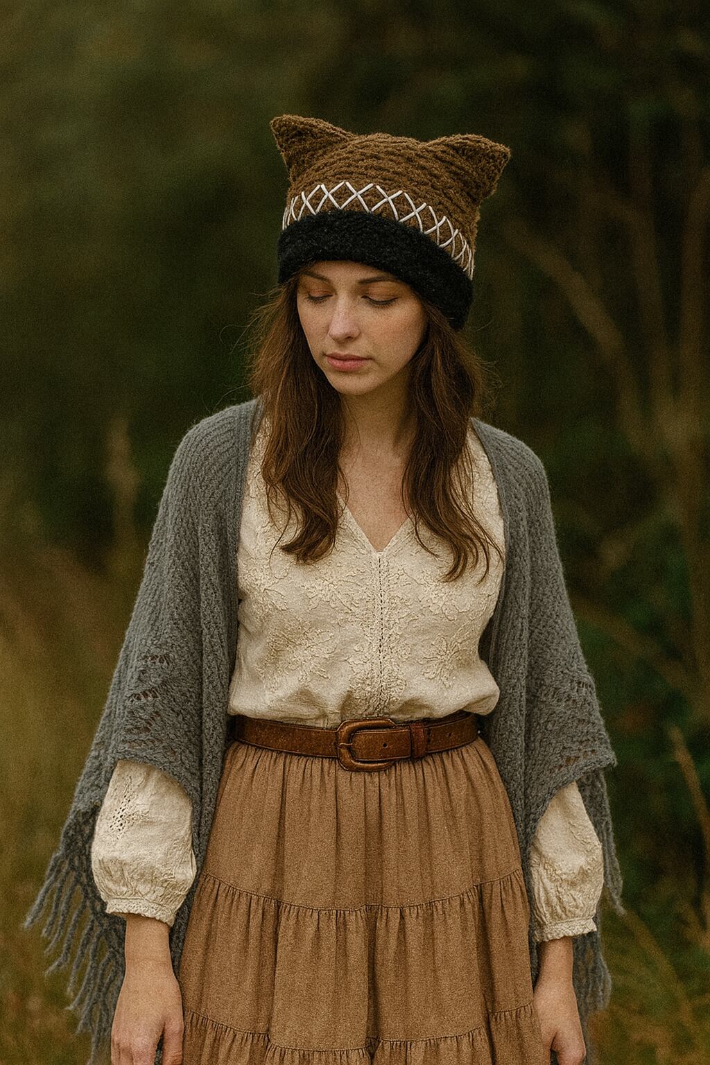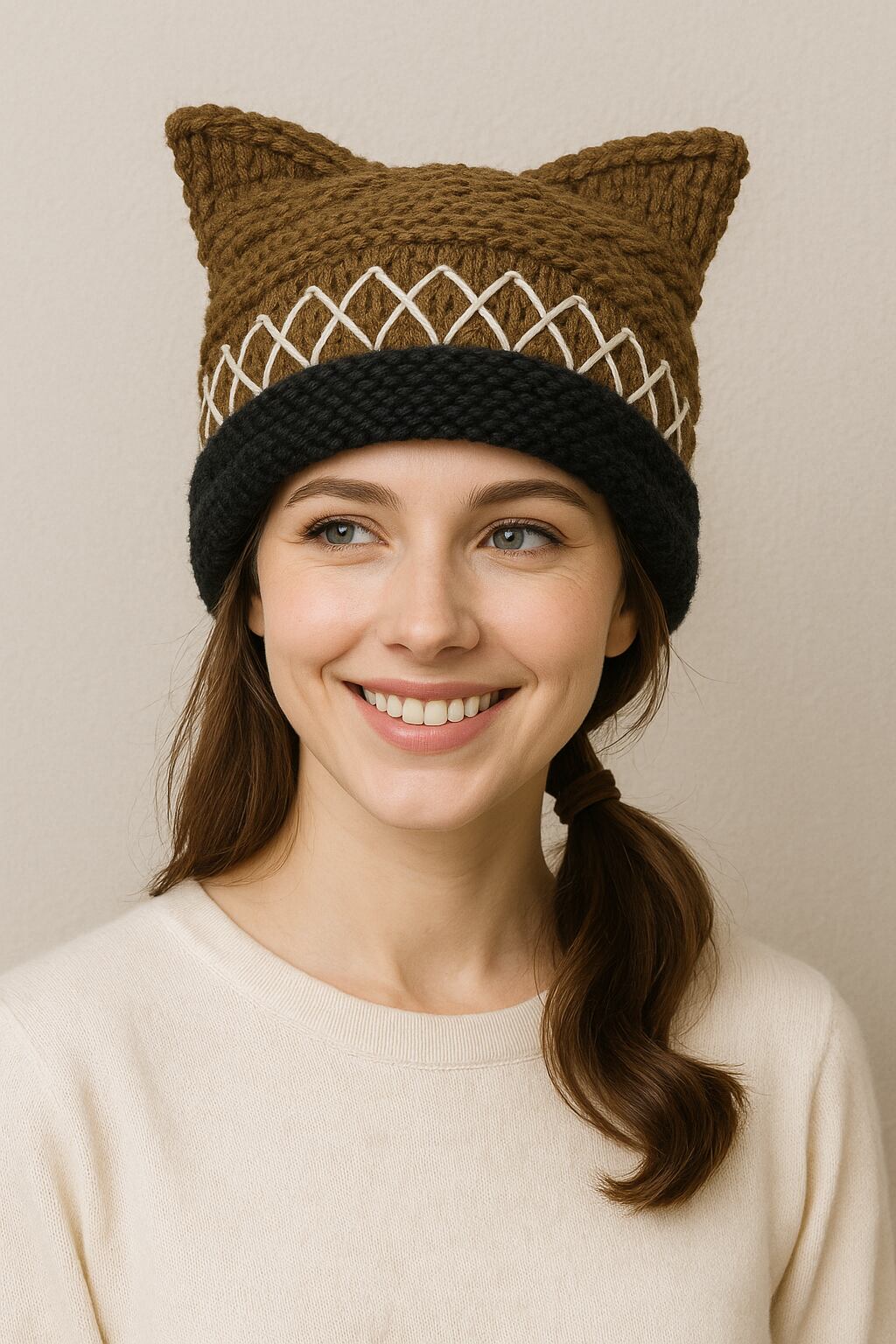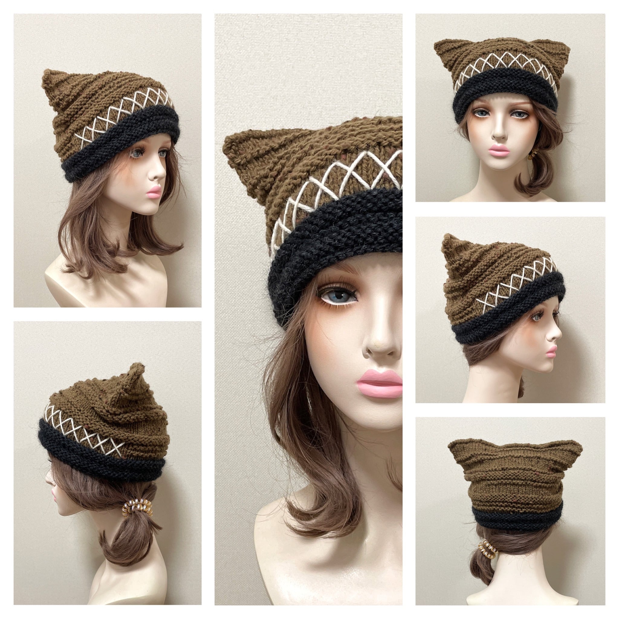 丁寧にしっかり編み上げた猫耳デザインのニット帽です。