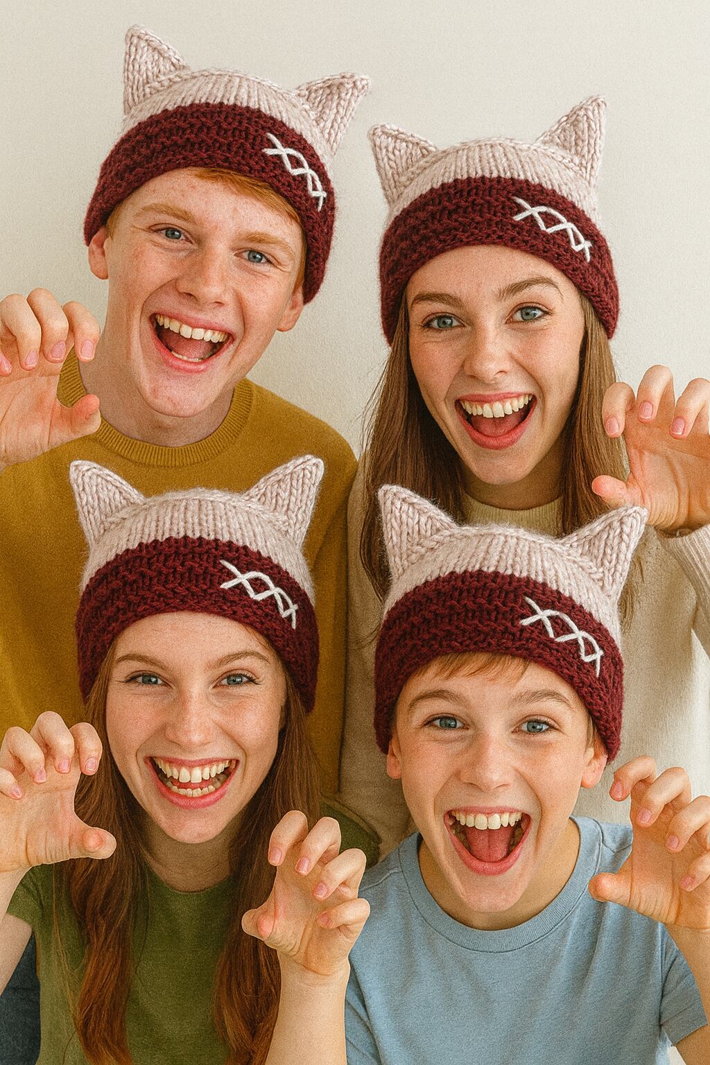 ♦︎親子、家族、友達とも楽しめる猫耳ニット帽(フリーサイズ)
