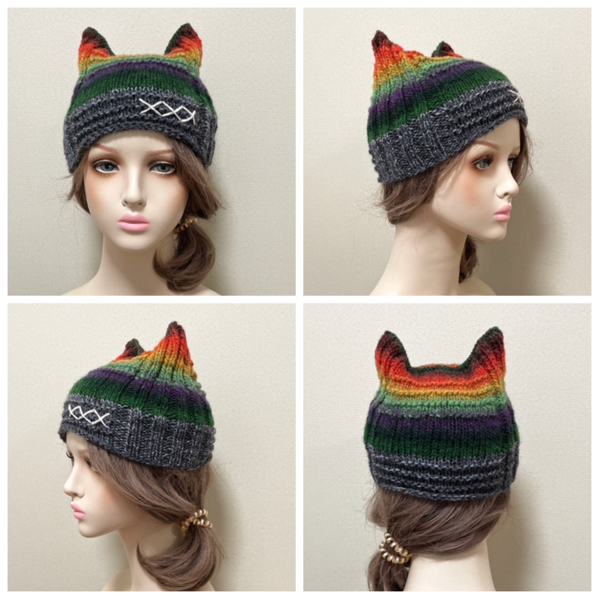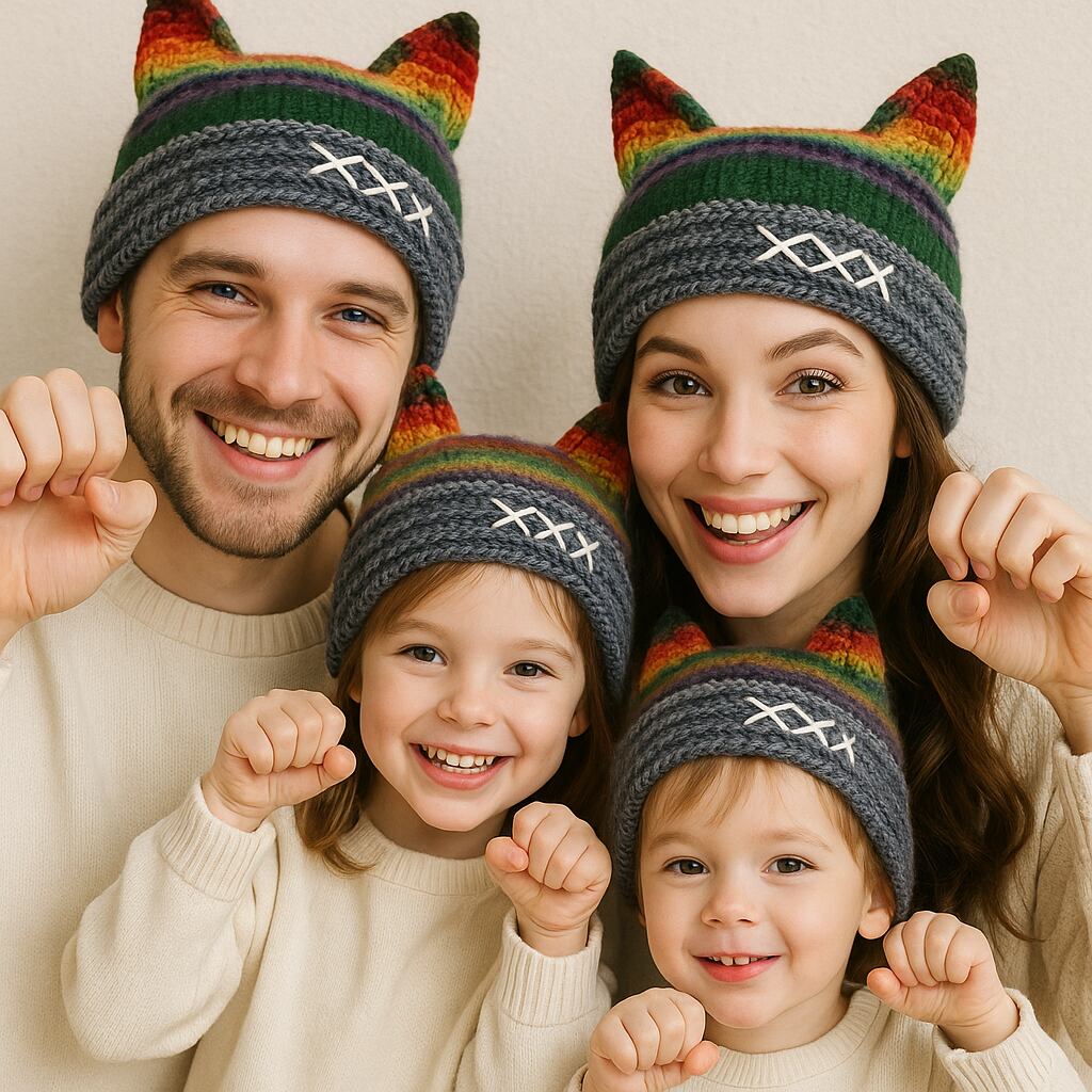 ♦︎親子、家族、友達とも楽しめる猫耳ニット帽(フリーサイズ)