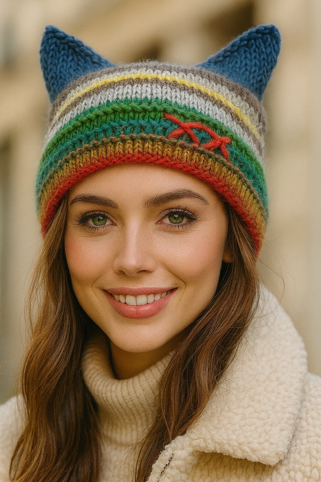 ♦︎親子、家族、友達とも楽しめる猫耳ニット帽(フリーサイズ)