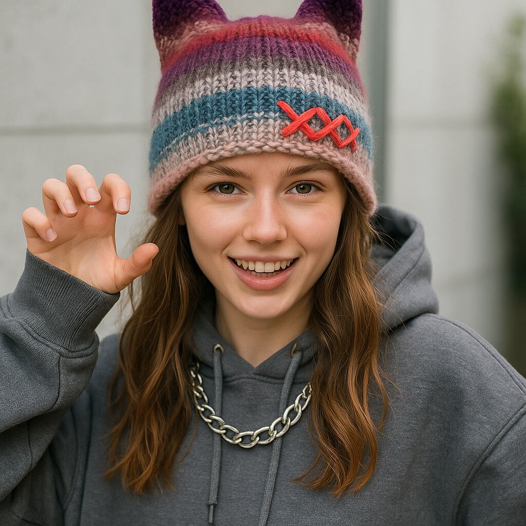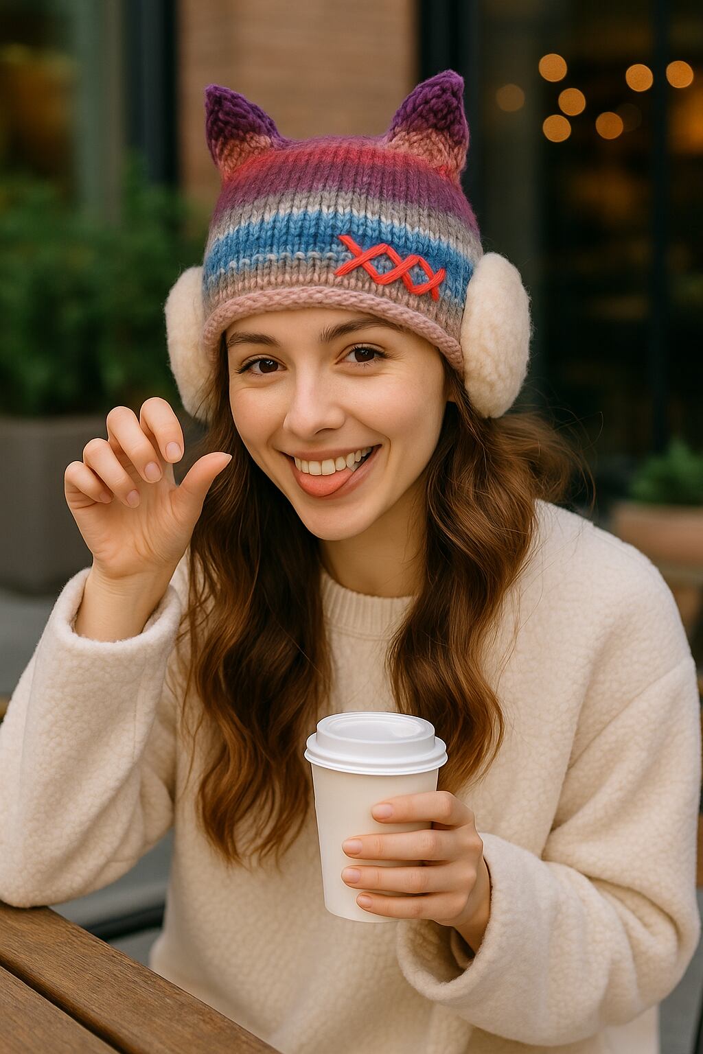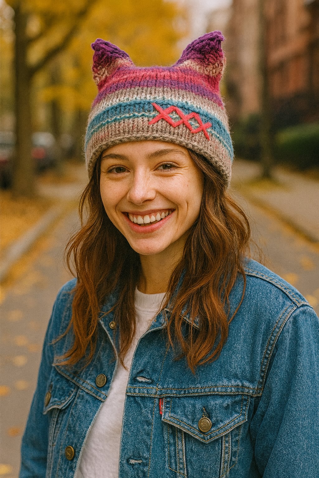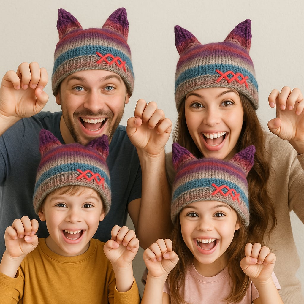 ♦︎親子、家族、友達とも楽しめる猫耳ニット帽(フリーサイズ)