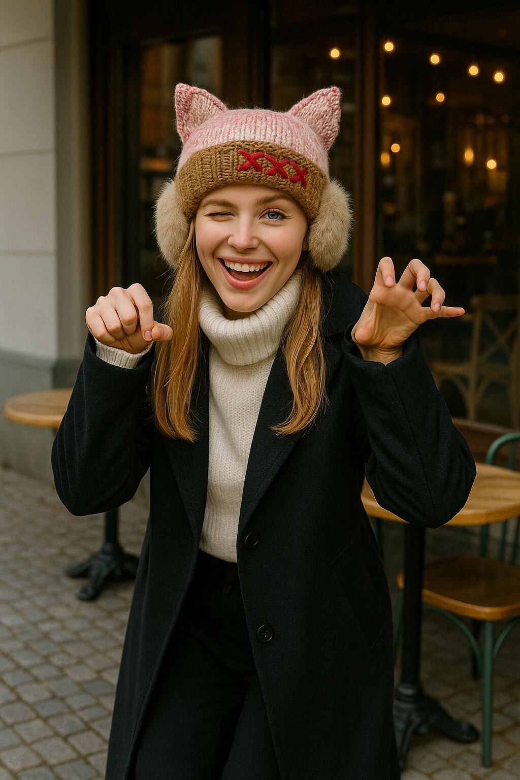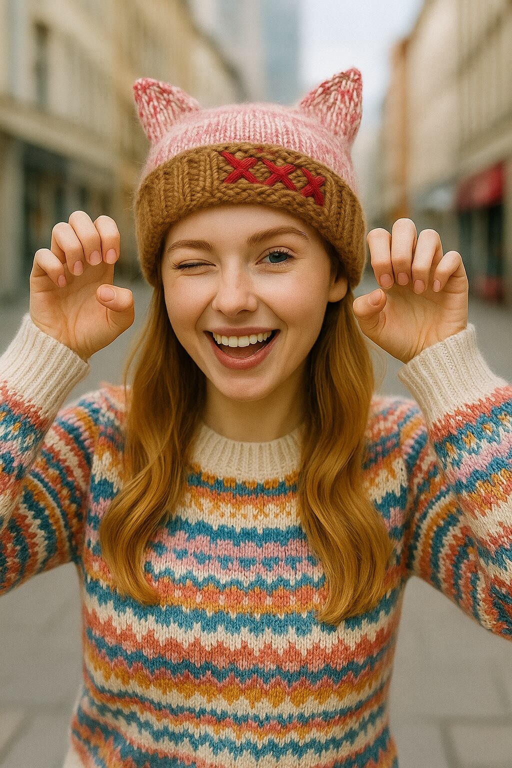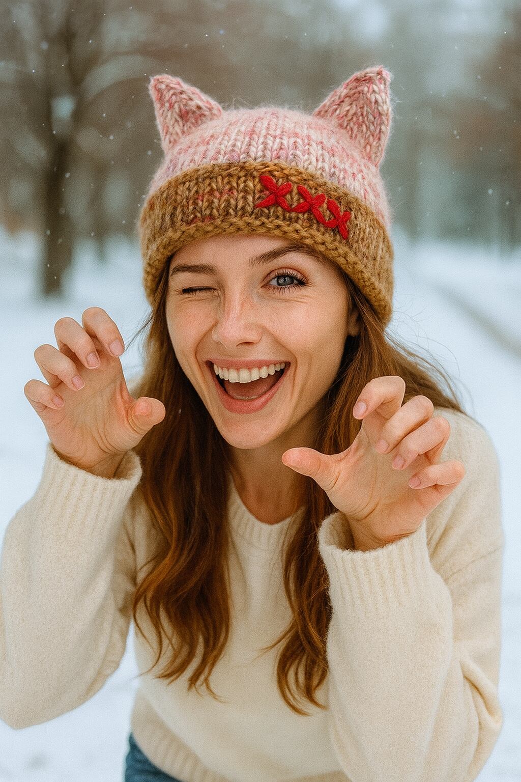 ♦︎親子、家族、友達とも楽しめる猫耳ニット帽(フリーサイズ)