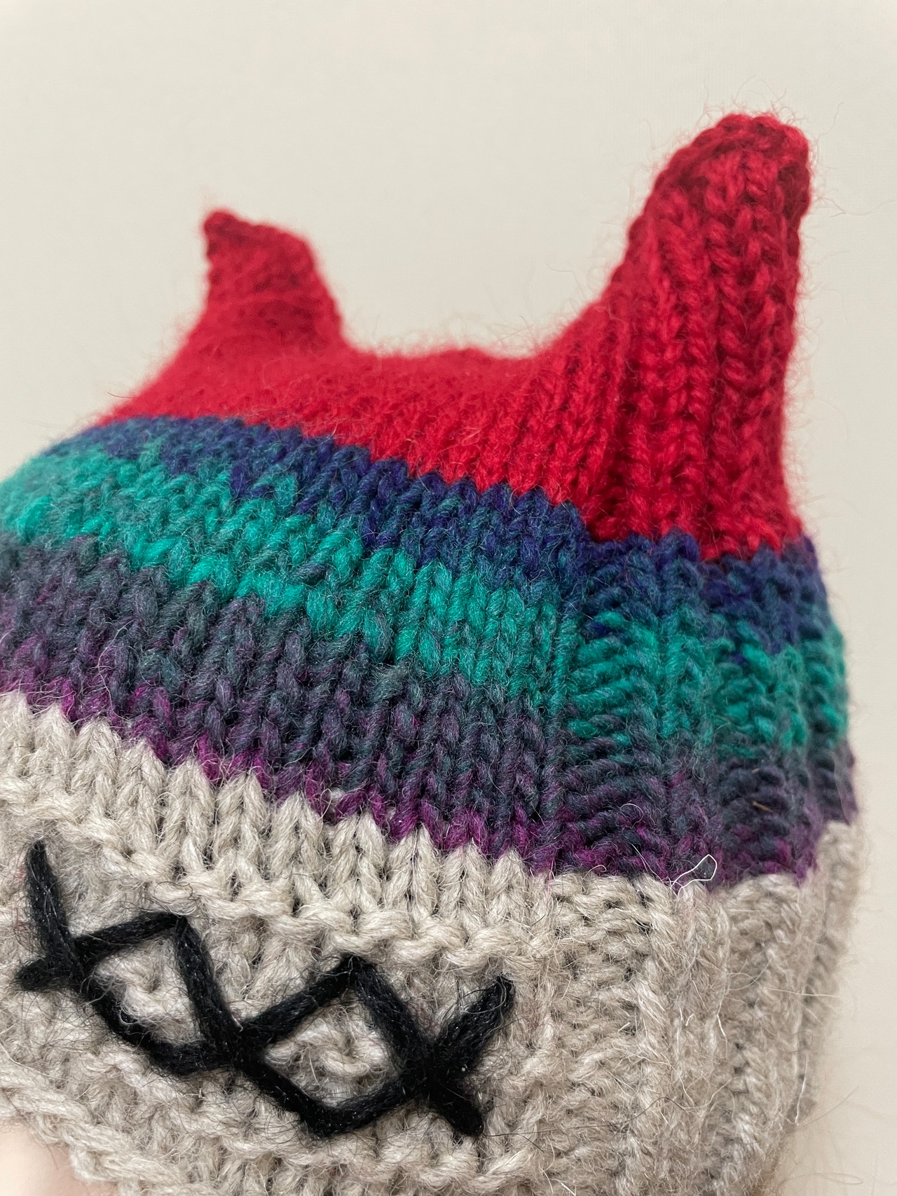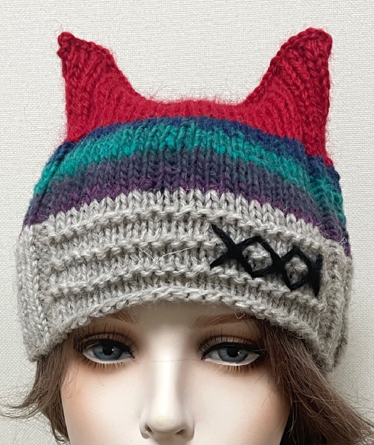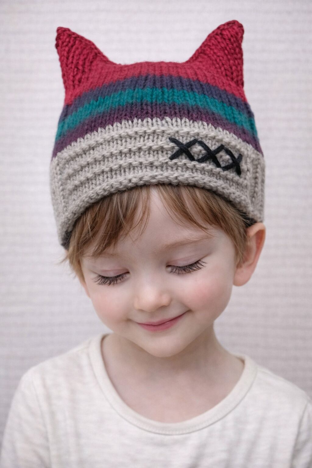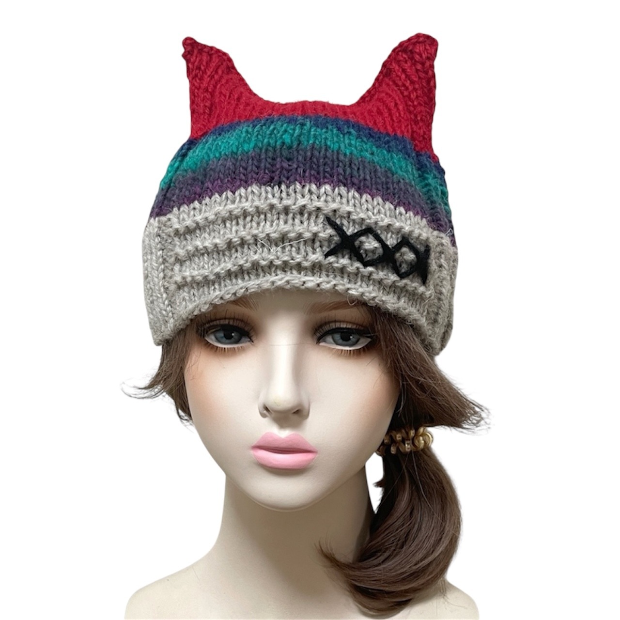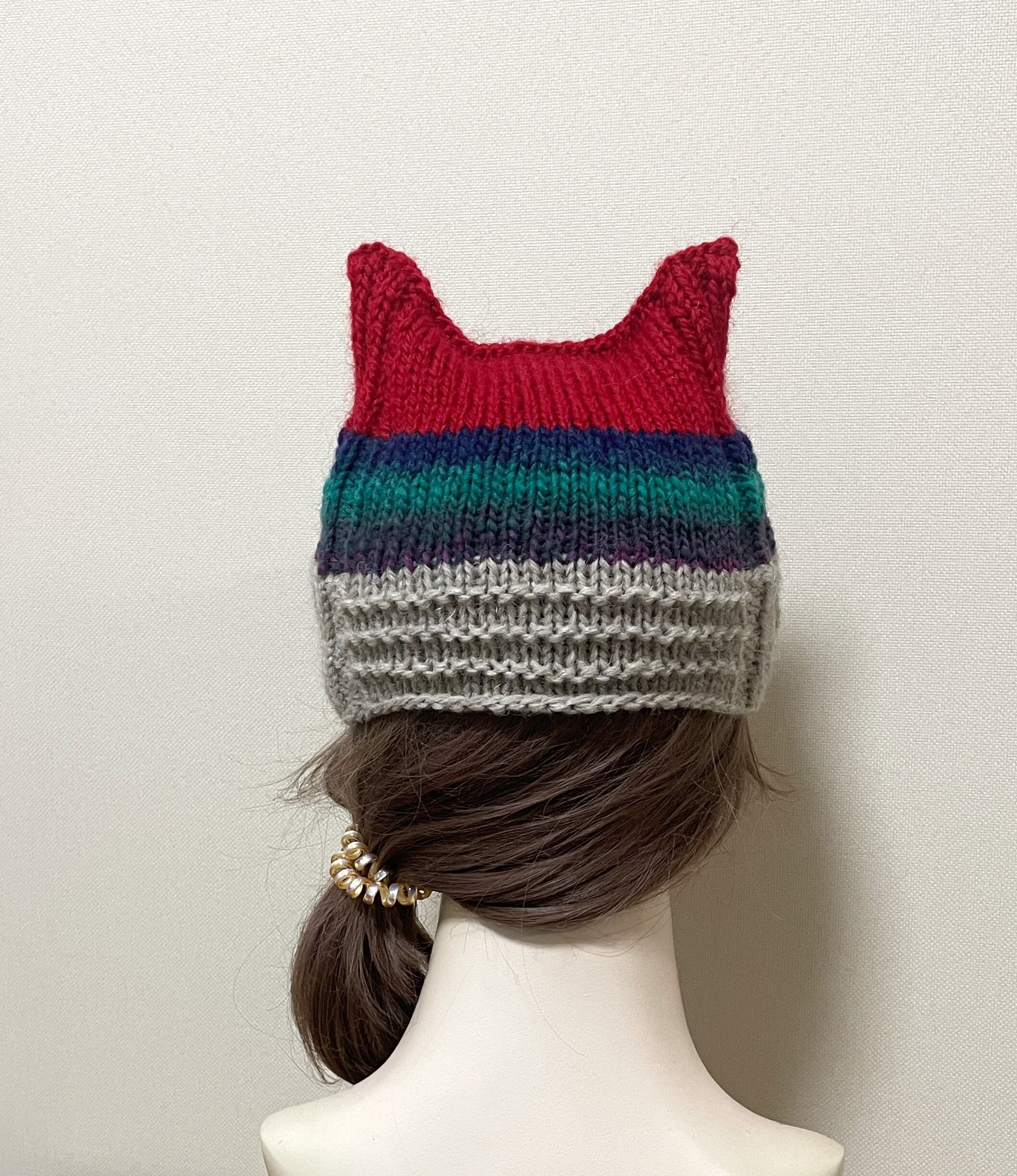 寒い日の外出に、さっと被れる猫耳ニット帽です。
