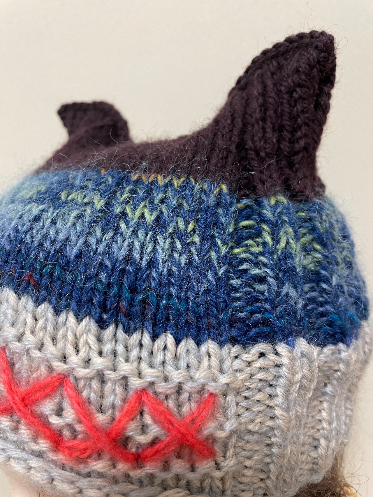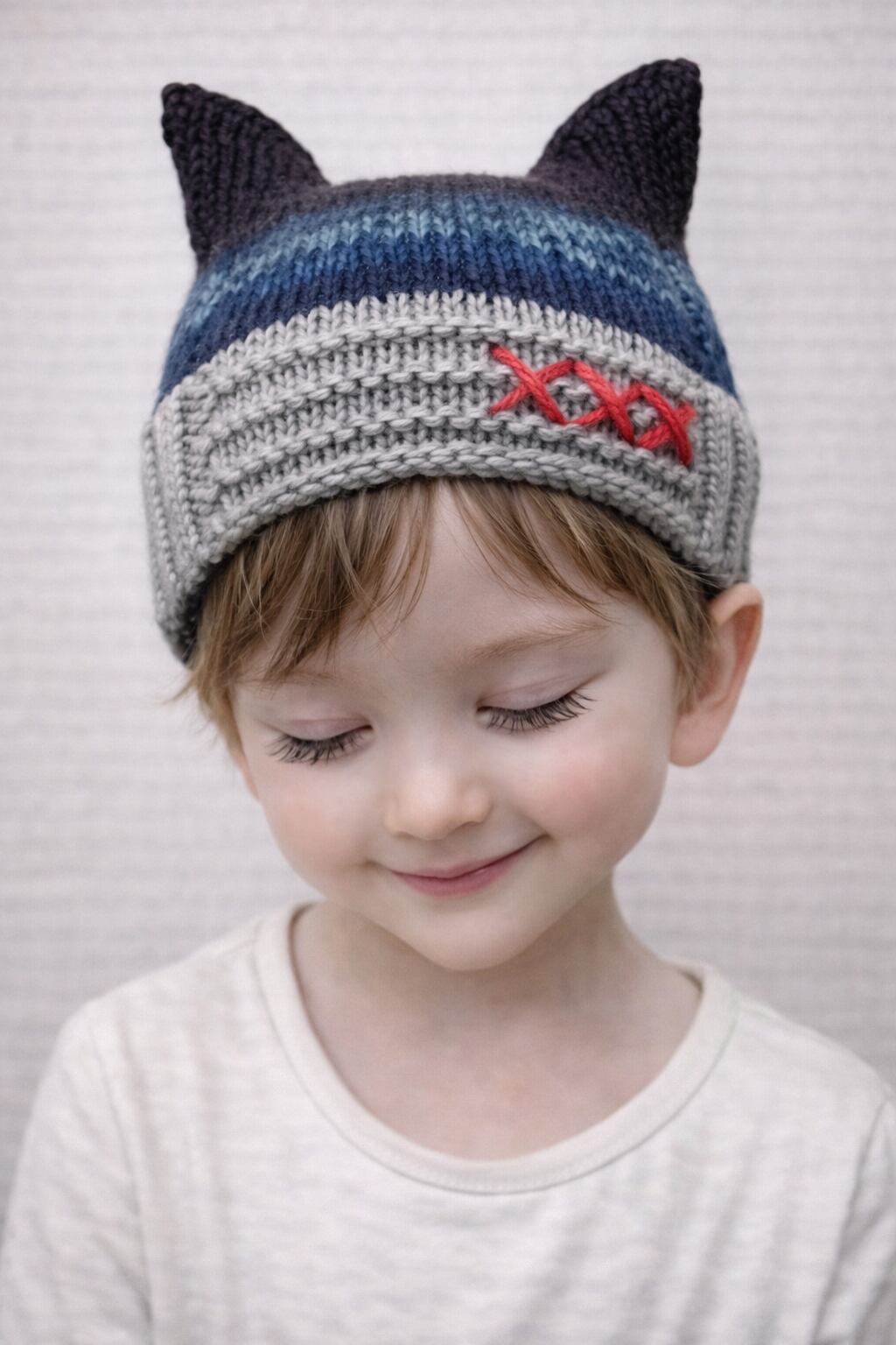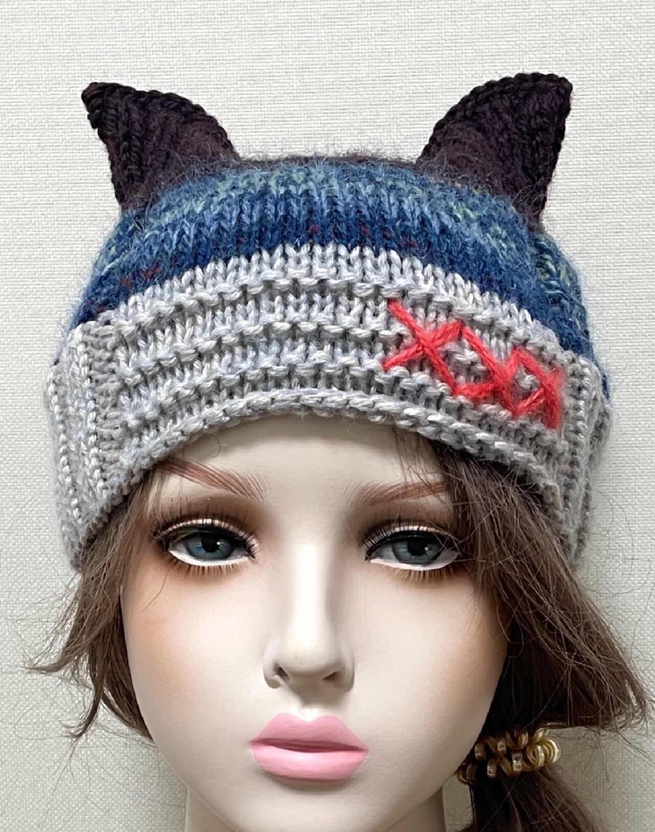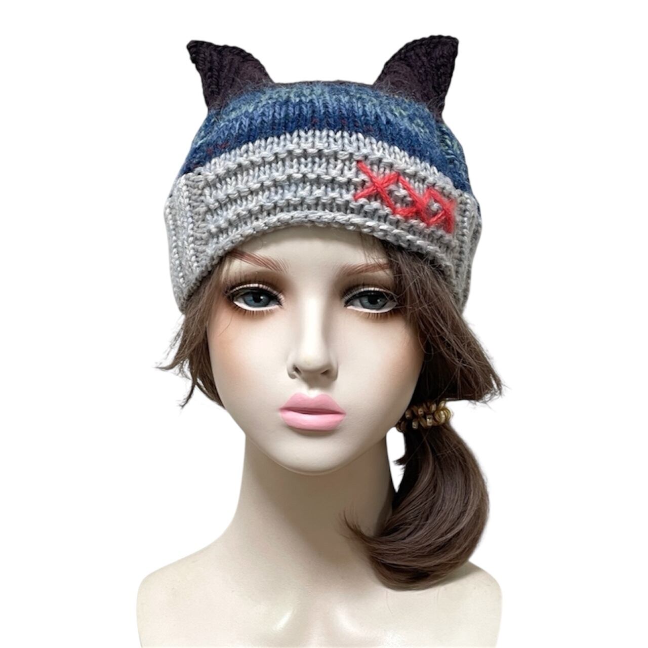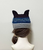 寒い日の外出に、さっと被れる猫耳ニット帽です。