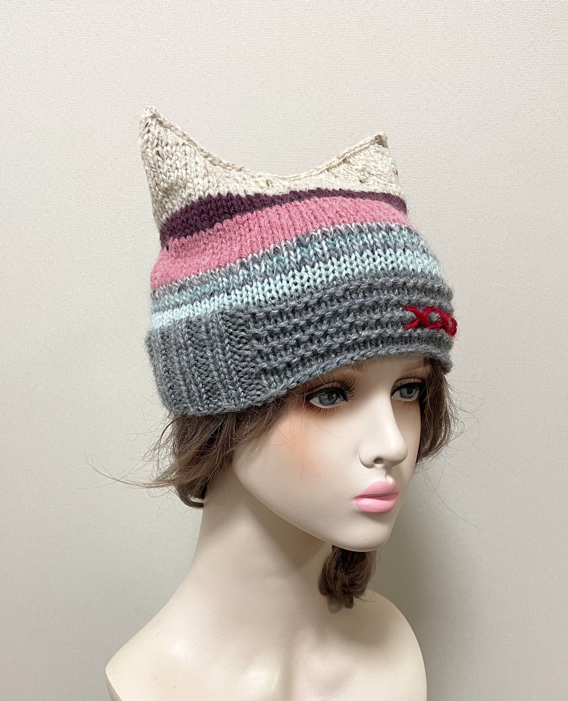 寒い日の外出に、さっと被れる猫耳ニット帽です。