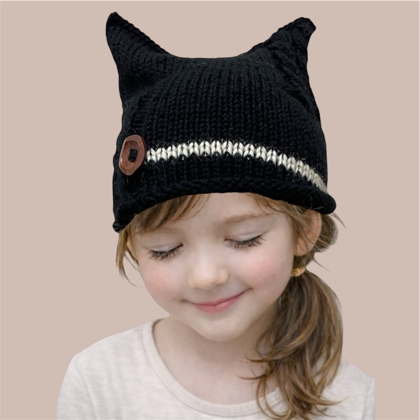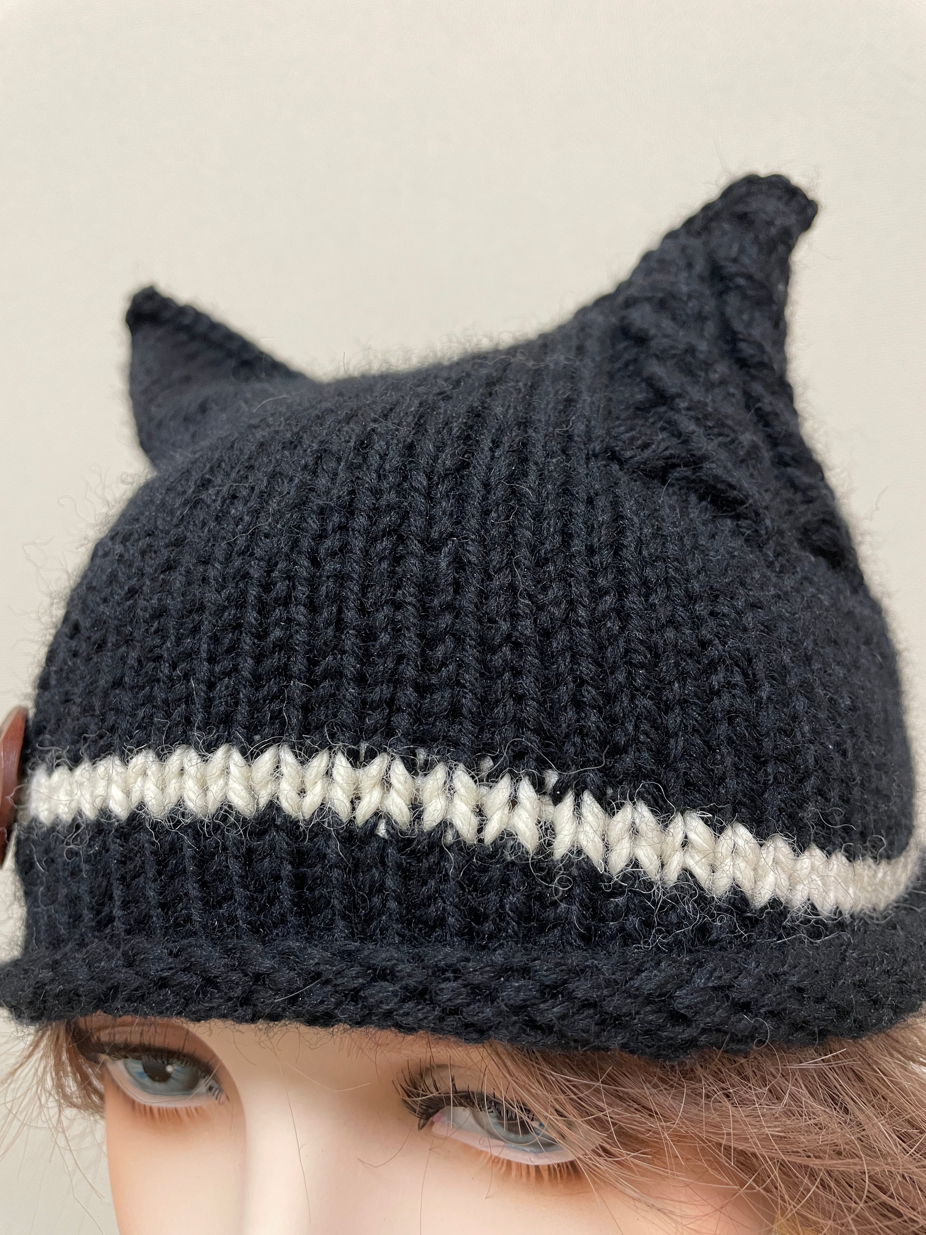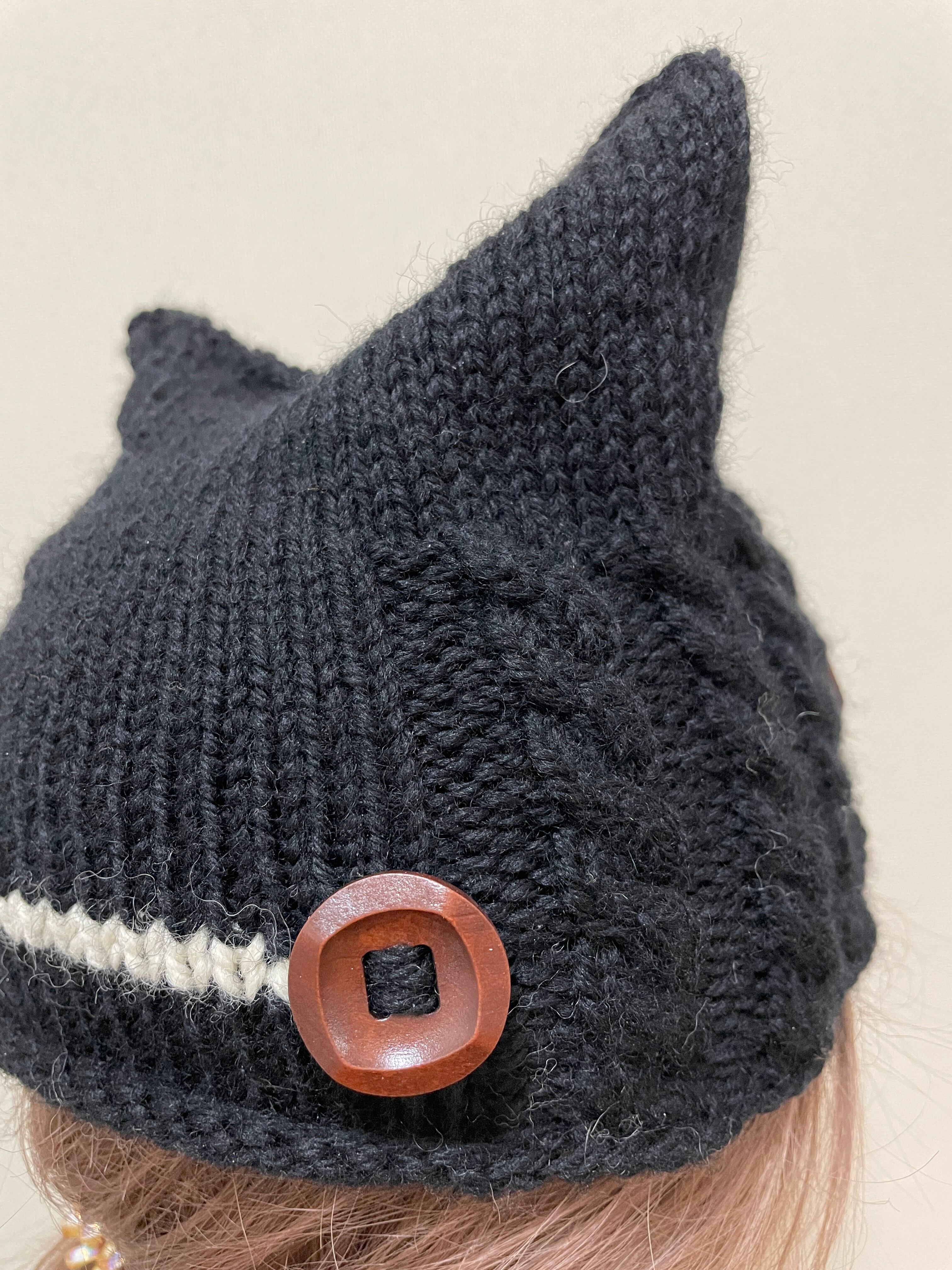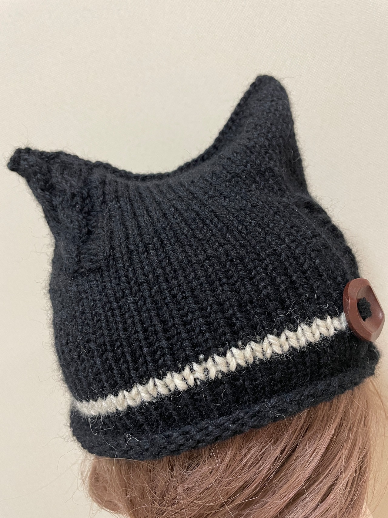 寒い日の外出に、さっと被れる猫耳ニット帽です。