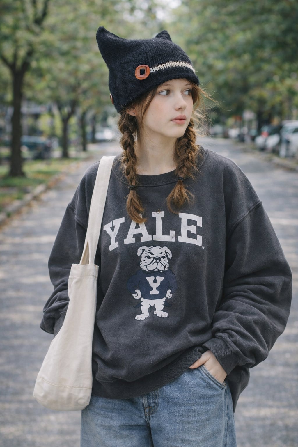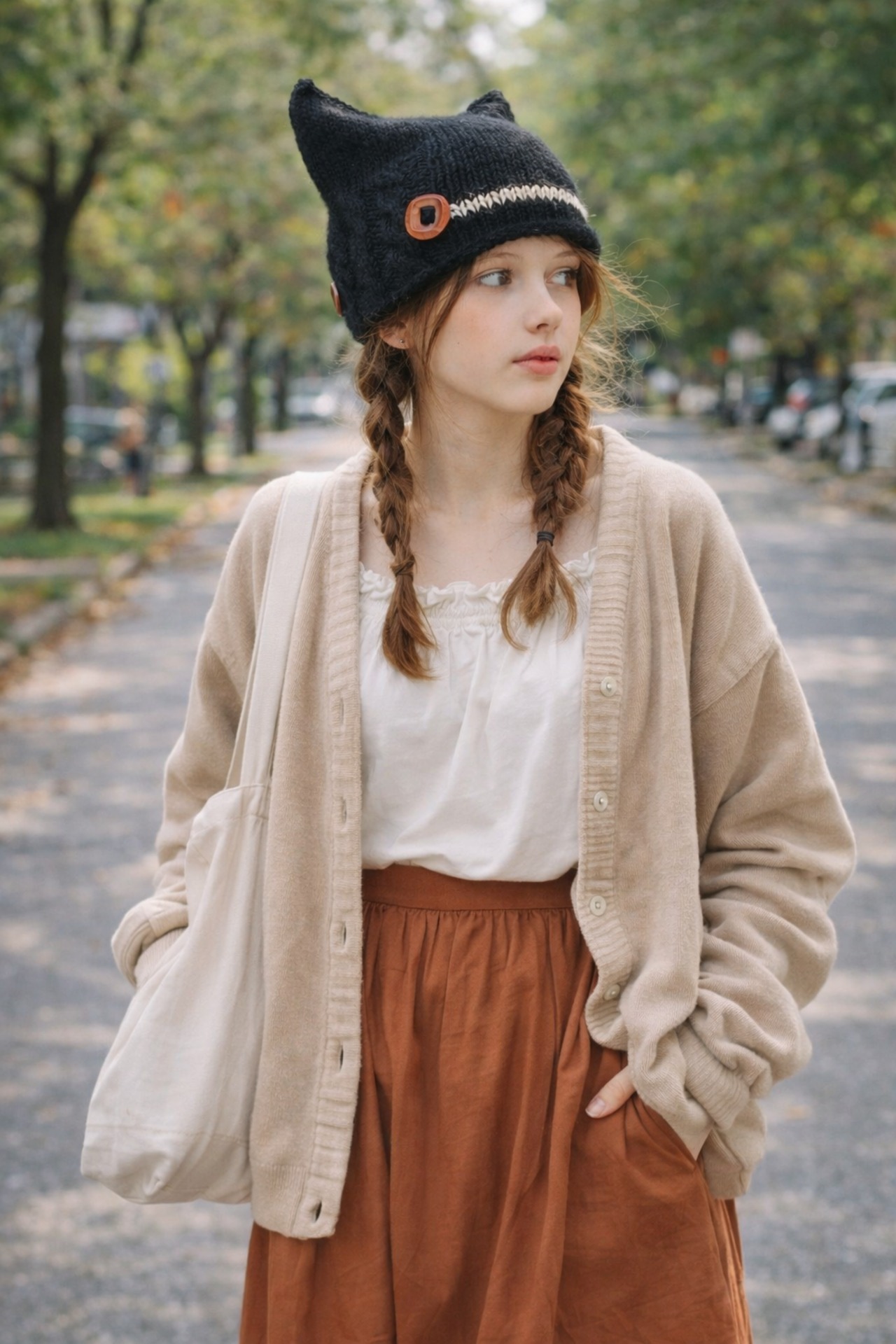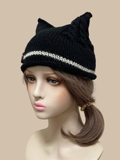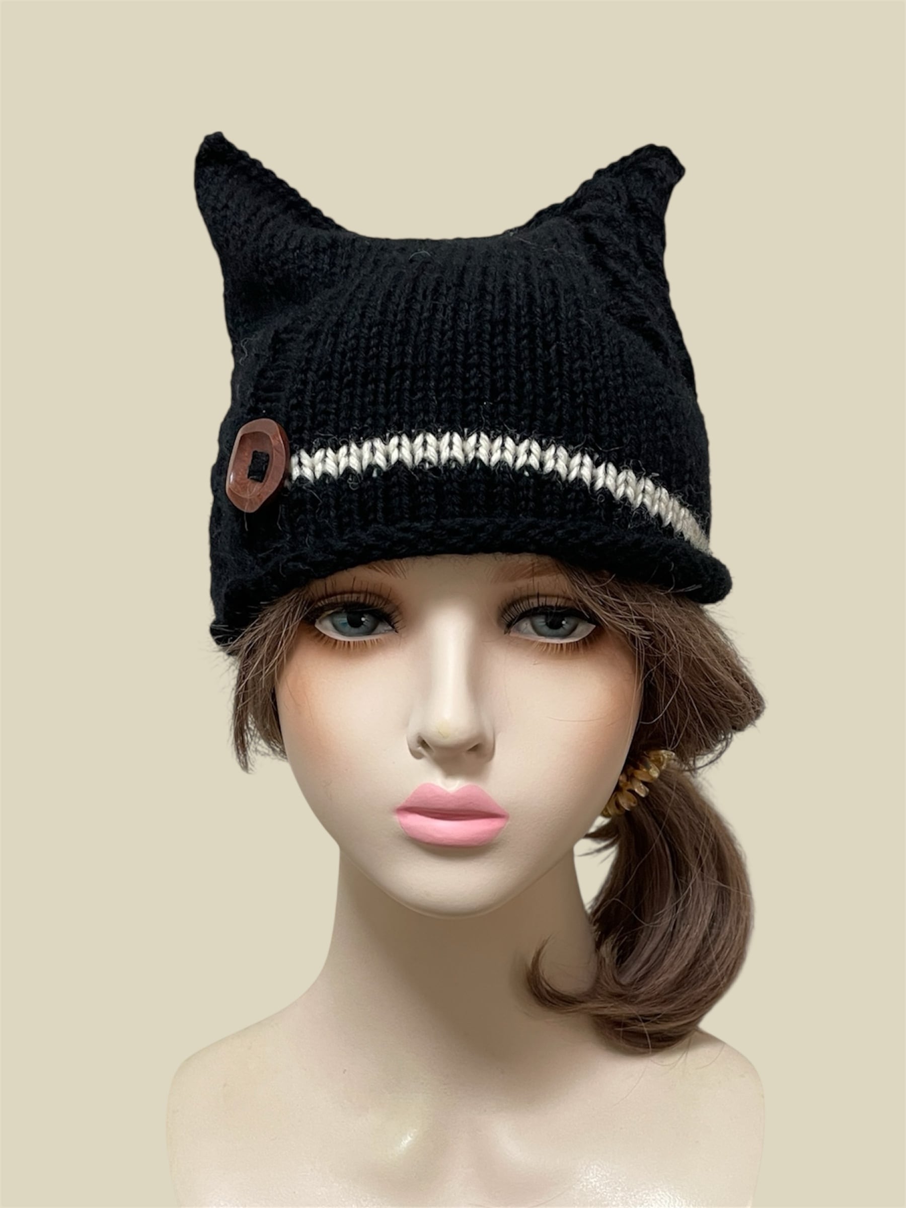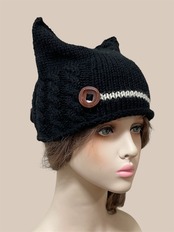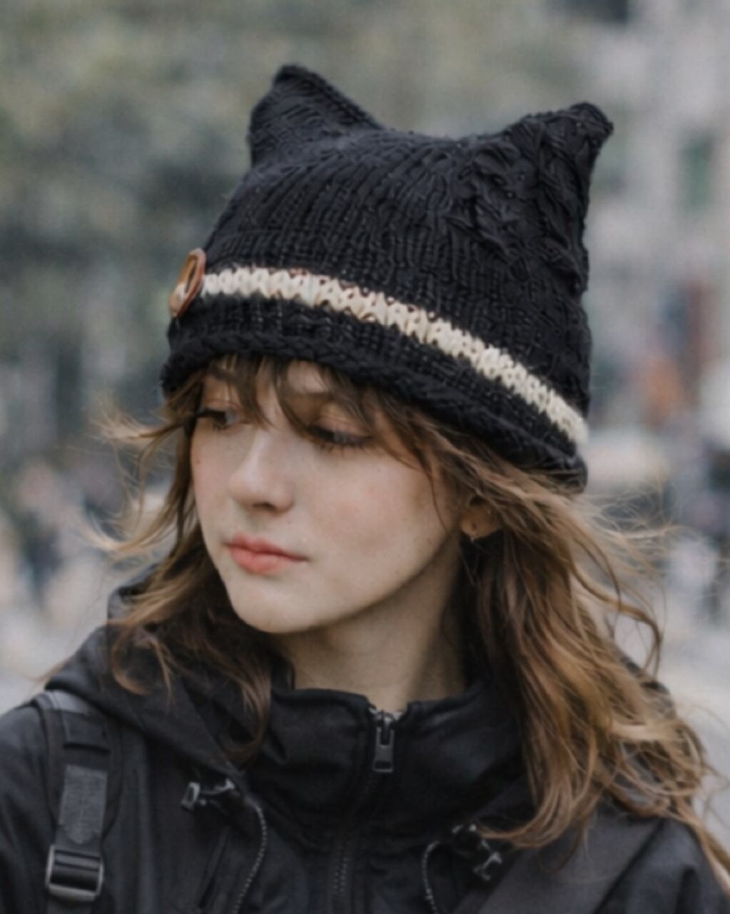 寒い日の外出に、さっと被れる猫耳ニット帽です。
