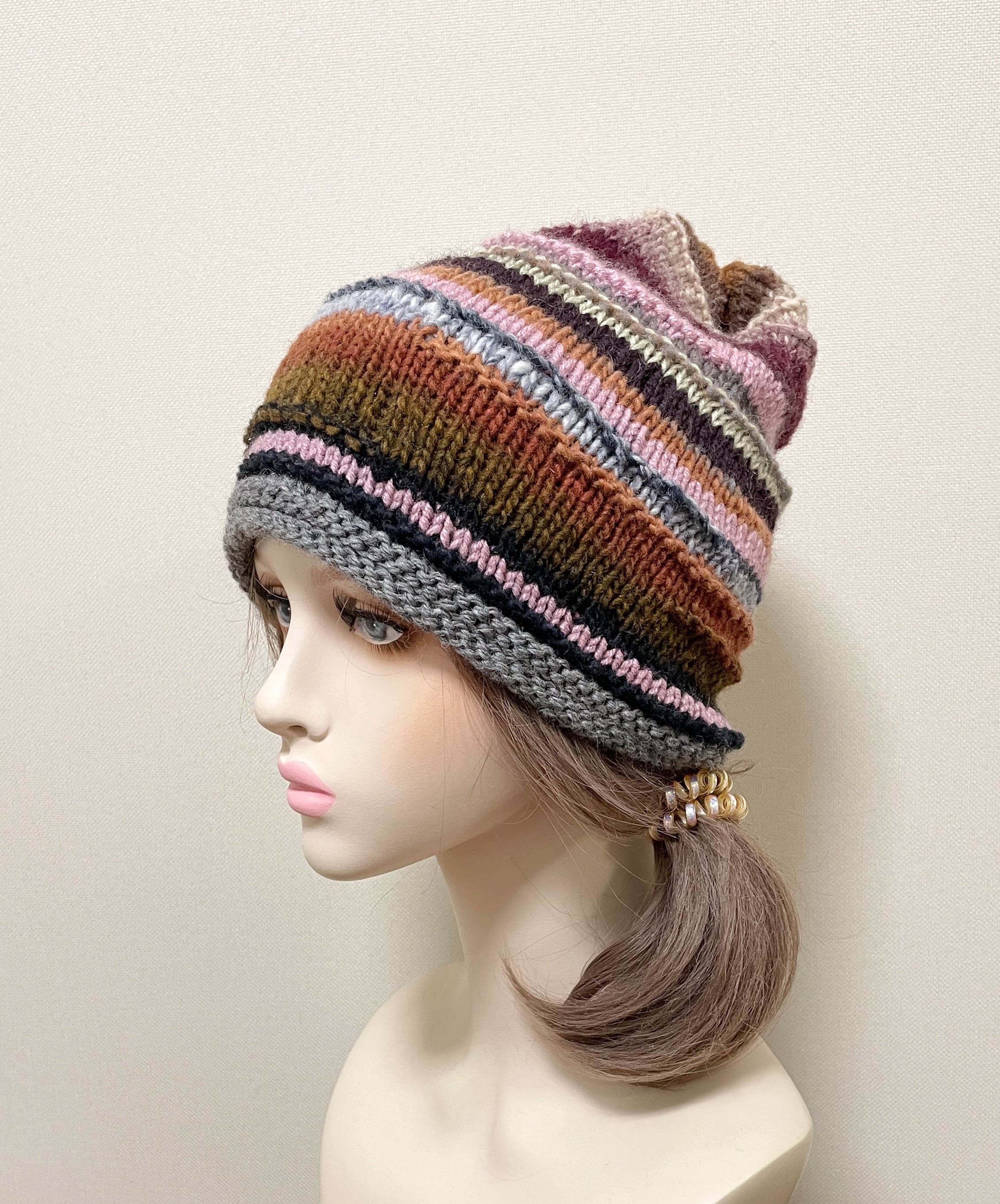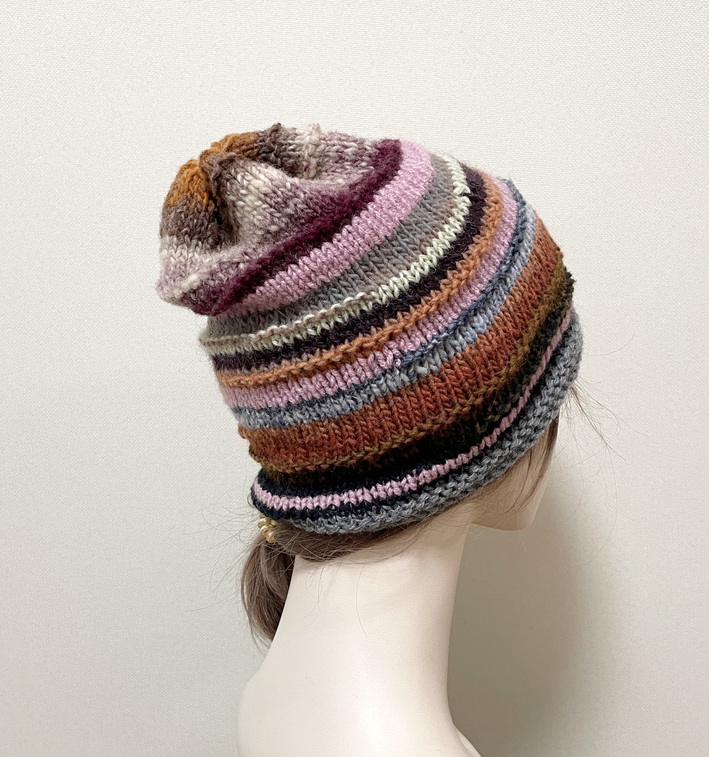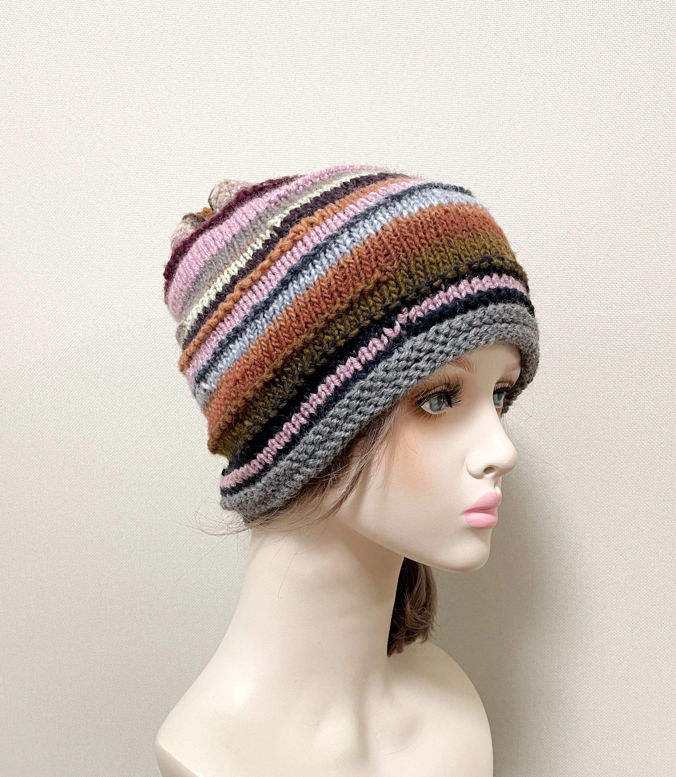 大人可愛い配色の手編みニット帽♡