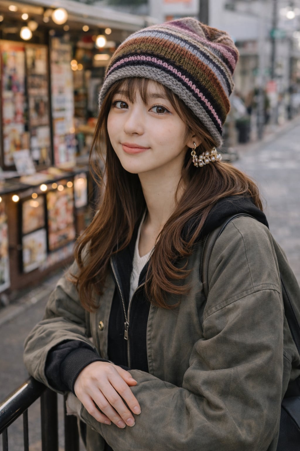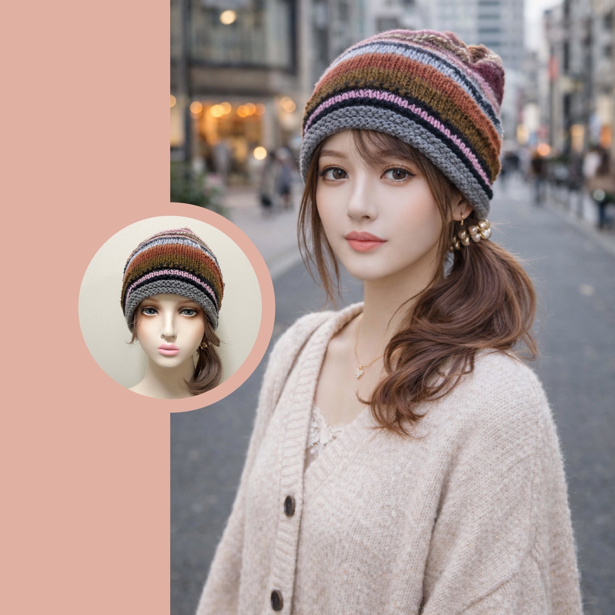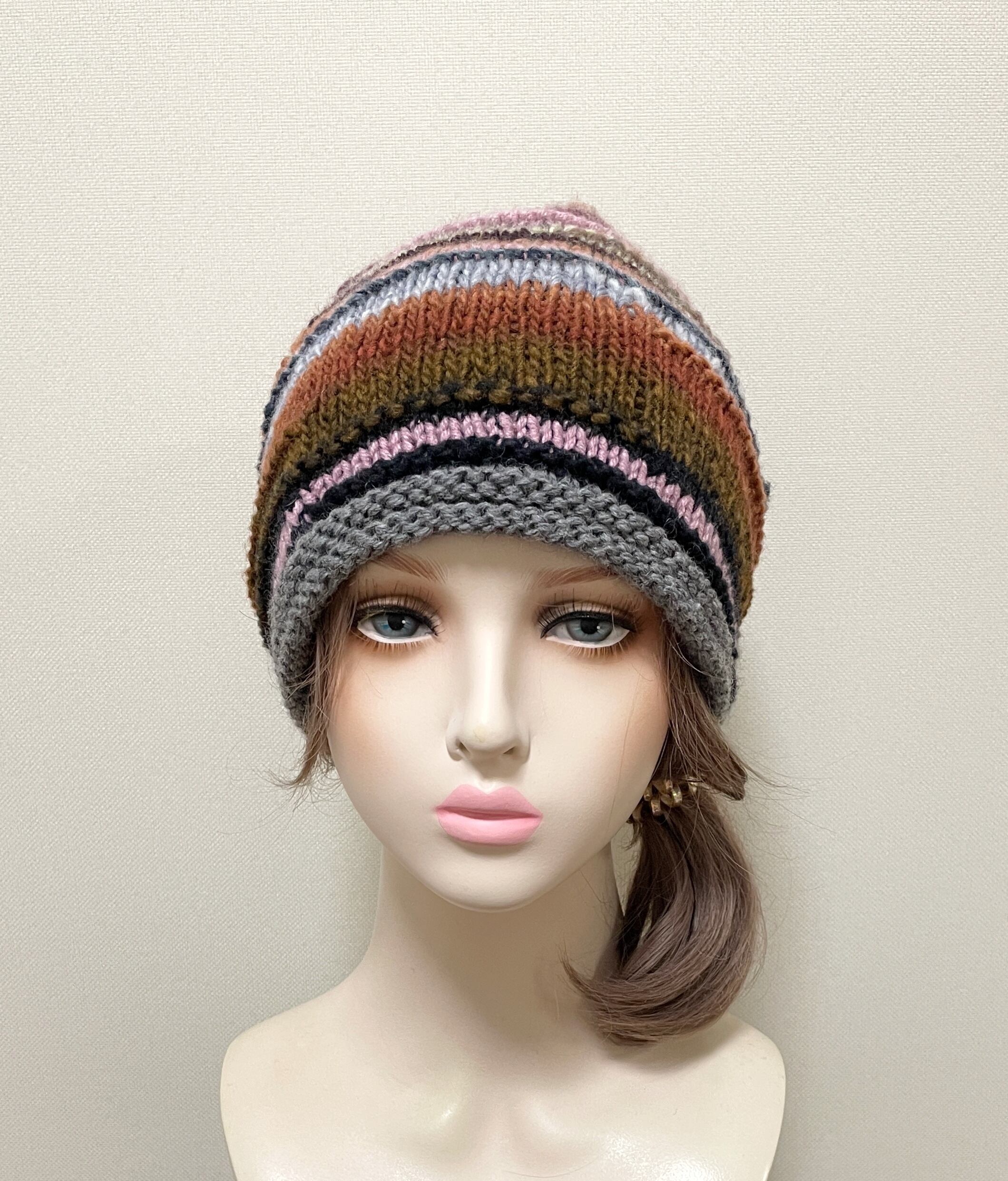 大人可愛い配色の手編みニット帽♡
