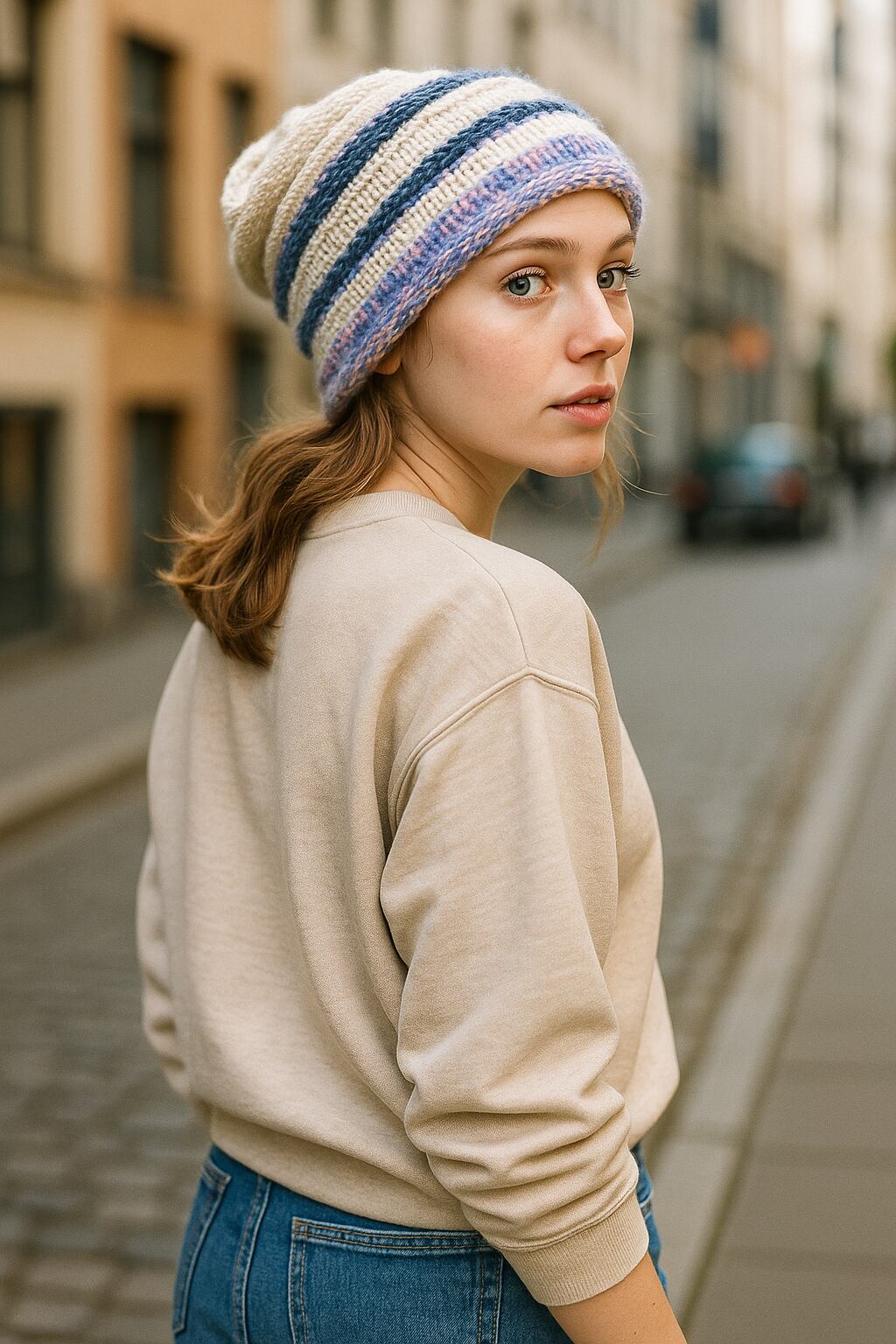 耳まですっぽり被れて温かいゆったりニット帽♡
