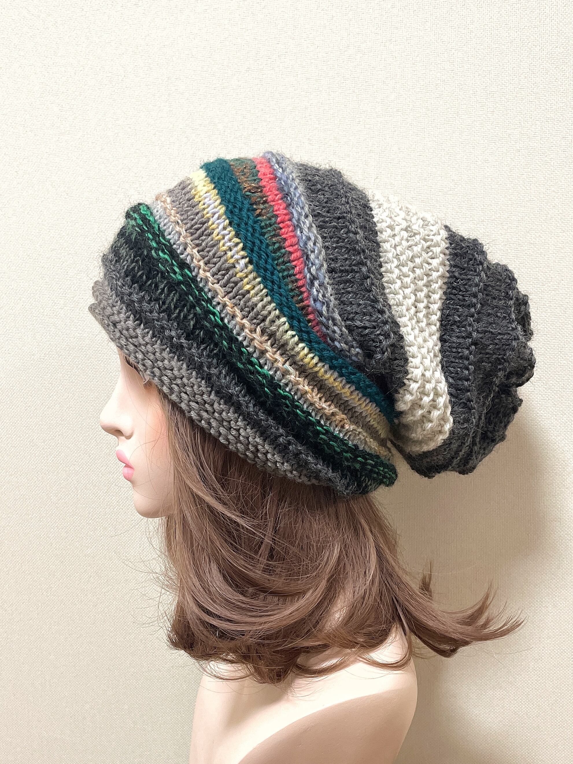 #ニット帽#帽子#ニット#手編み#春#秋冬#冬#厚手#防寒#ザックリ#ゆったり