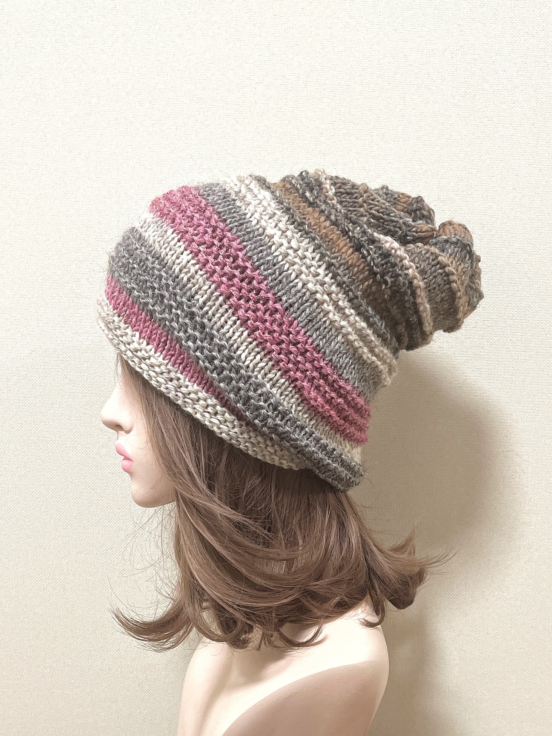 #ニット帽#帽子#ニット#手編み#春#秋冬#冬#厚手#防寒#ザックリ#ゆったり