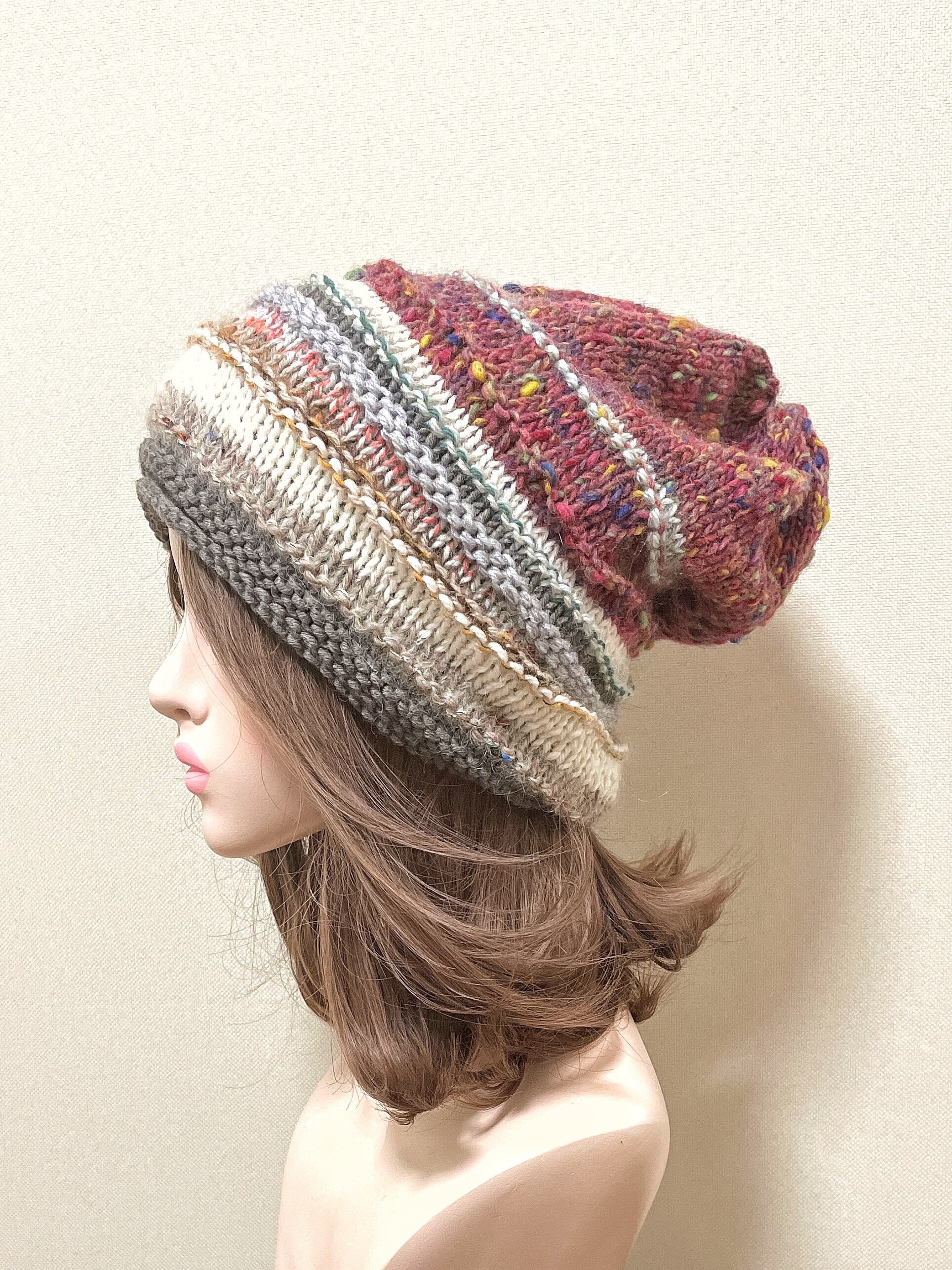 #ニット帽#帽子#ニット#手編み#春#秋冬#冬#厚手#防寒#ザックリ#ゆったり