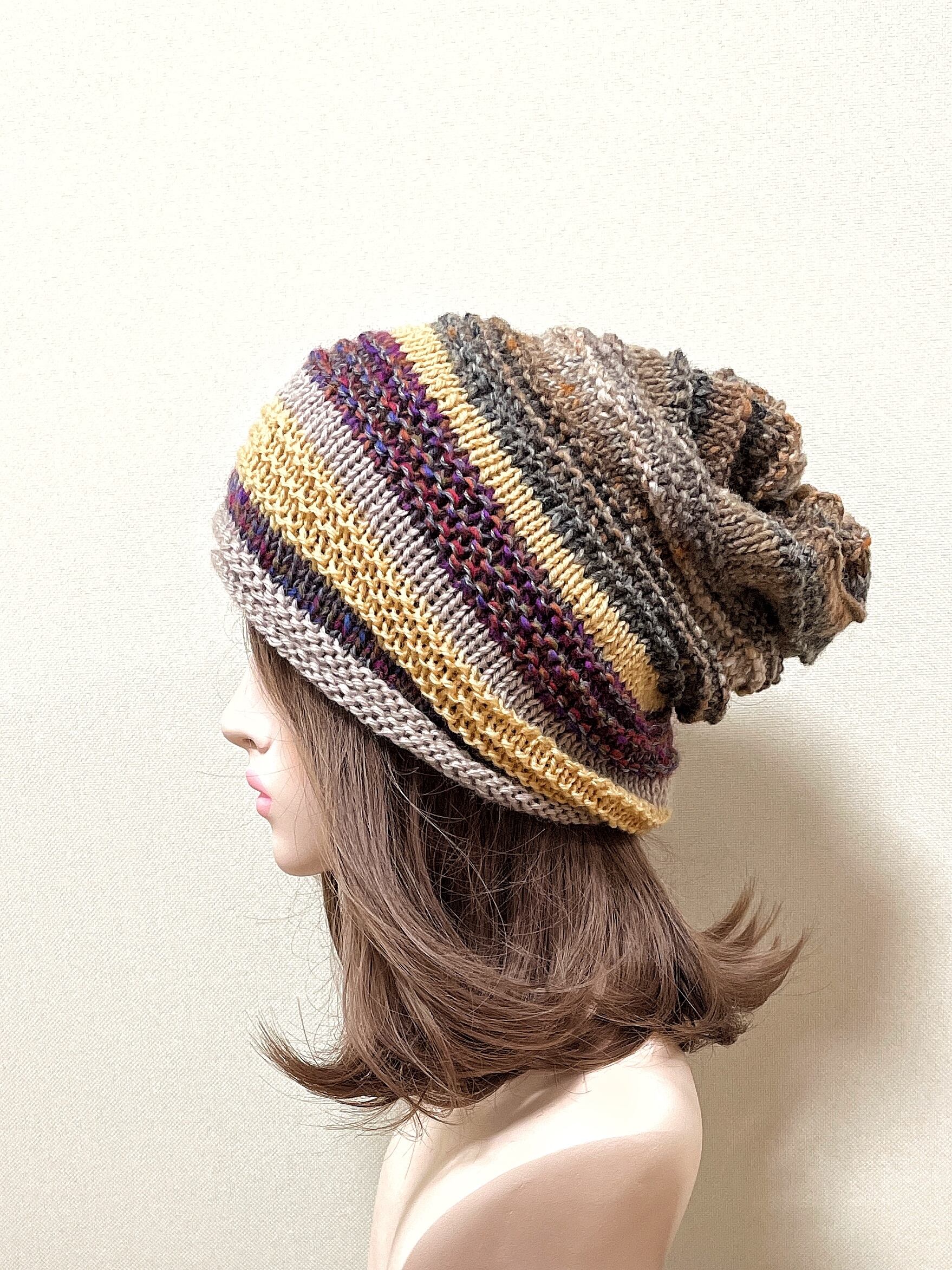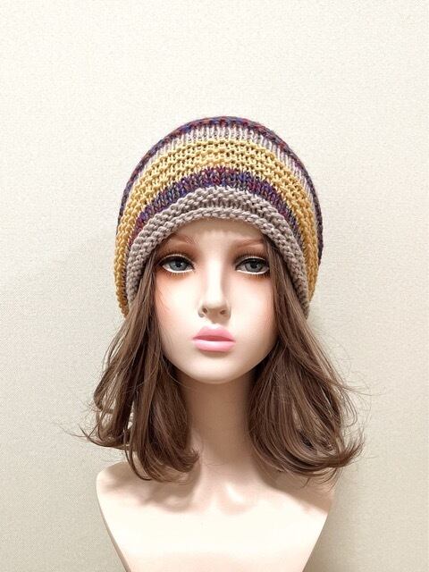 #ニット帽#帽子#ニット#手編み#春#秋冬#冬#厚手#防寒#ザックリ#ゆったり