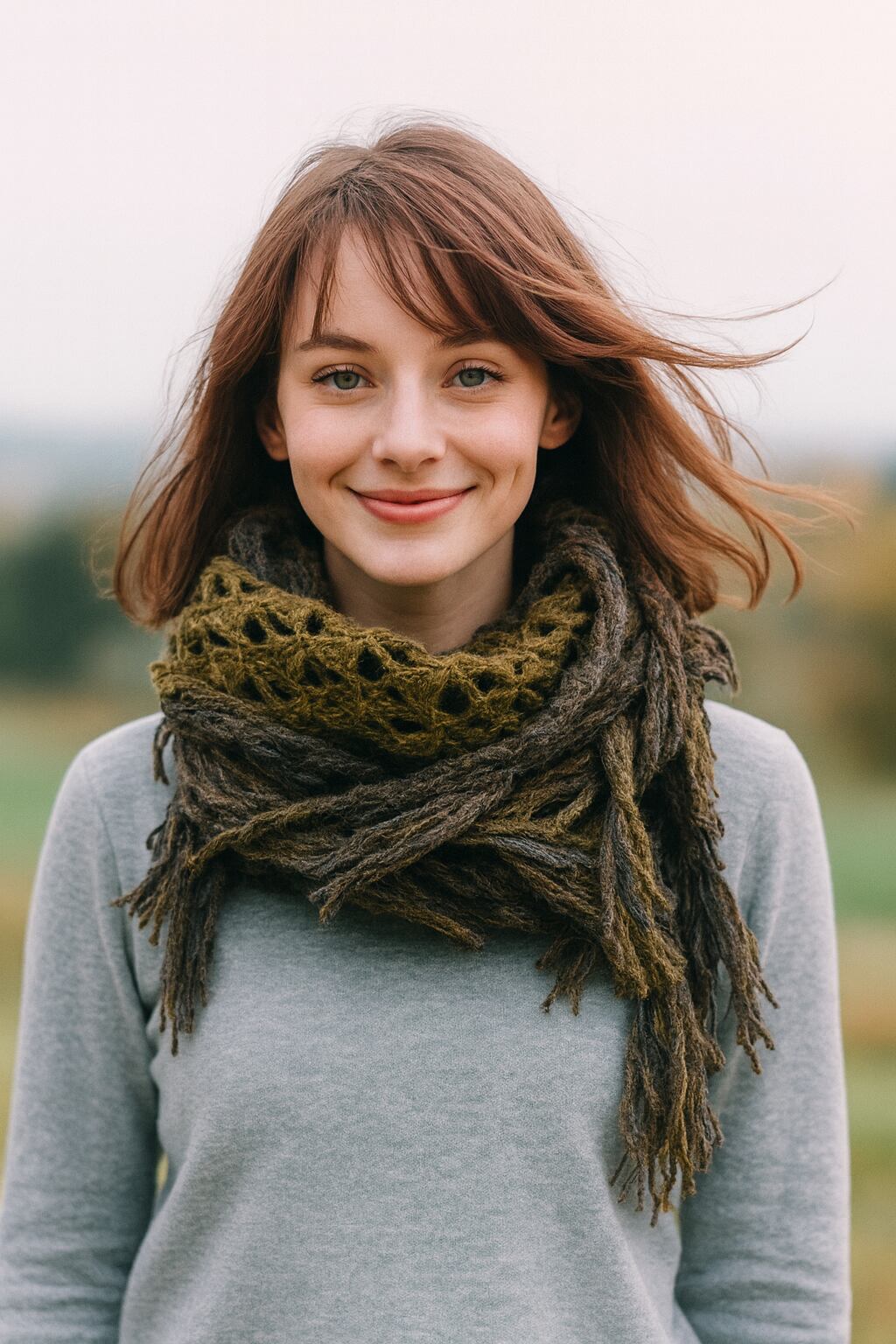 巻き方で表情が変わり、顔写りを明るくしてくれます。落ち着いた配色で、様々なファッションに合わせやすいアイテムです。