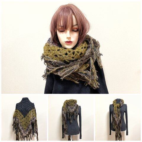 肌触りと配色バランスに拘ったふんわり柔らかく暖かい三角ストールです。