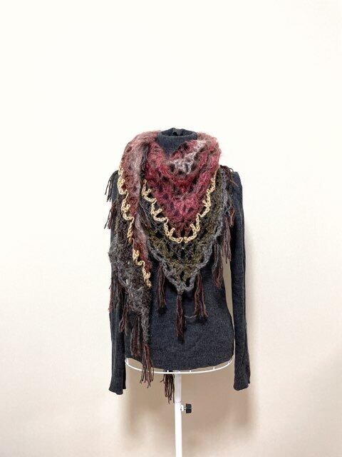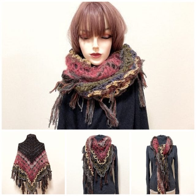 肌触りと配色バランスに拘ったふんわり柔らかく暖かい三角ストールです。