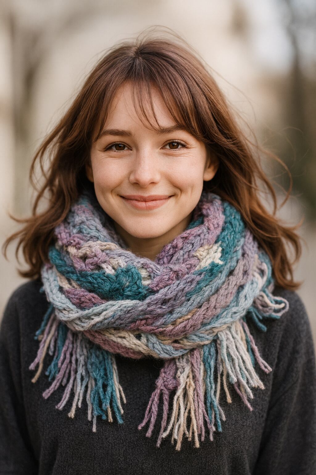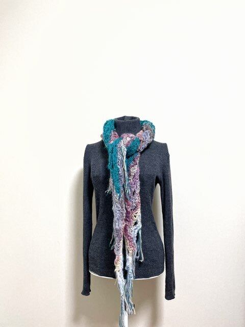 チクチクしにくい様々な素材やカラーを使って仕上げたカラフルなストールです。