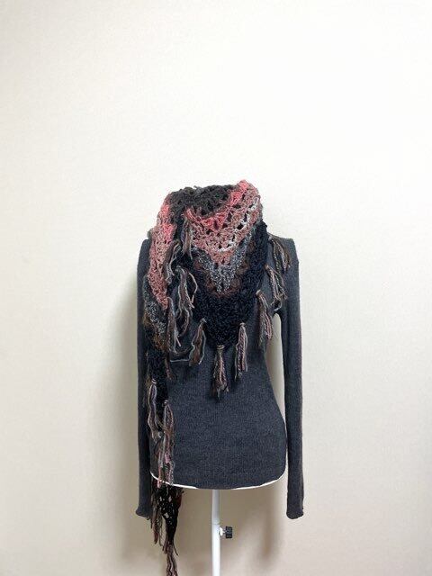 チクチクしにくい様々な素材やカラーを使って仕上げたカラフルなストールです。