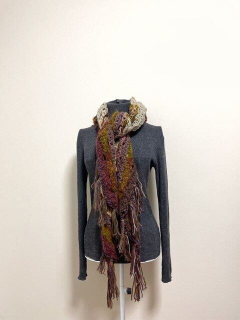 チクチクしにくい様々な素材やカラーを使って仕上げたカラフルなストールです。