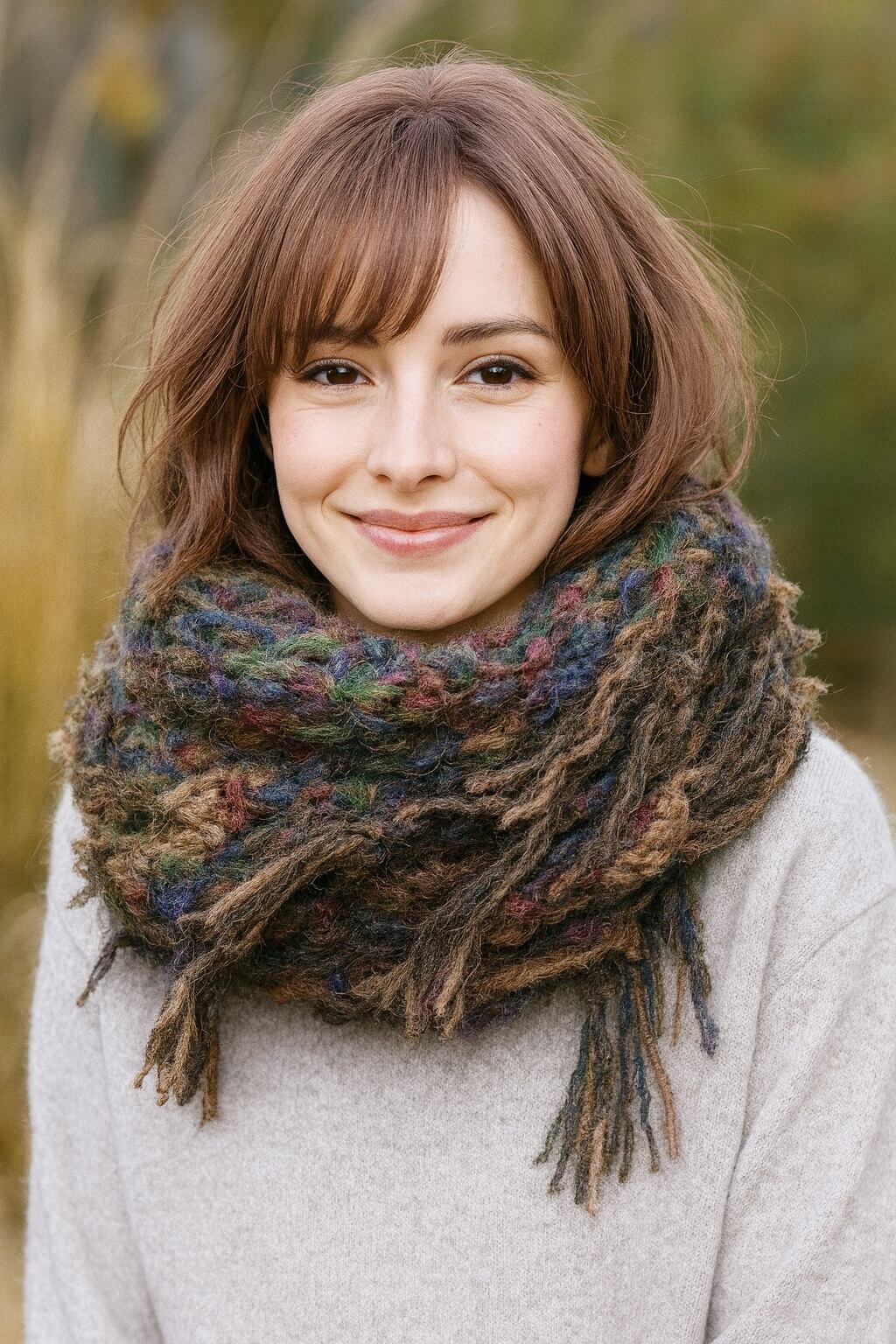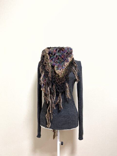 肌触りと配色バランスに拘ったふんわり柔らかく暖かい三角ストールです。