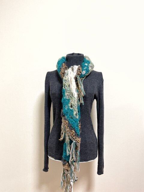 チクチクしにくい様々な素材やカラーを使って仕上げたカラフルなストールです。