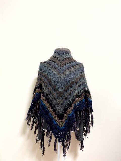 肌触りに拘り、カラフルに仕上げたふんわり柔らかく暖かい三角ストールです。