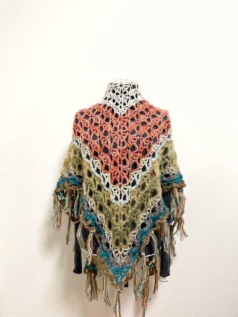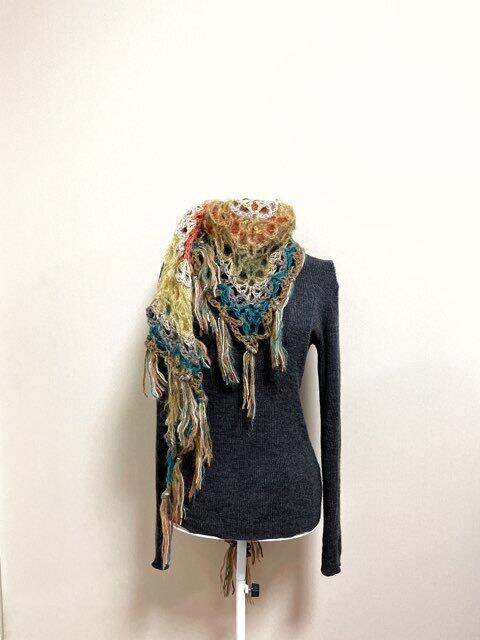 肌触りと配色バランスに拘ったふんわり柔らかく暖かい三角ストールです。
