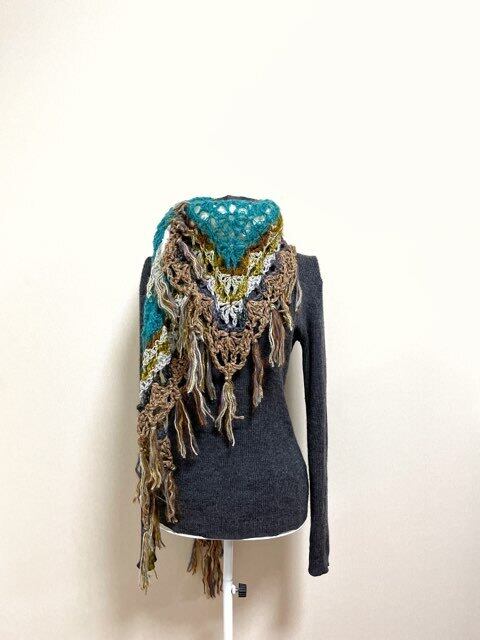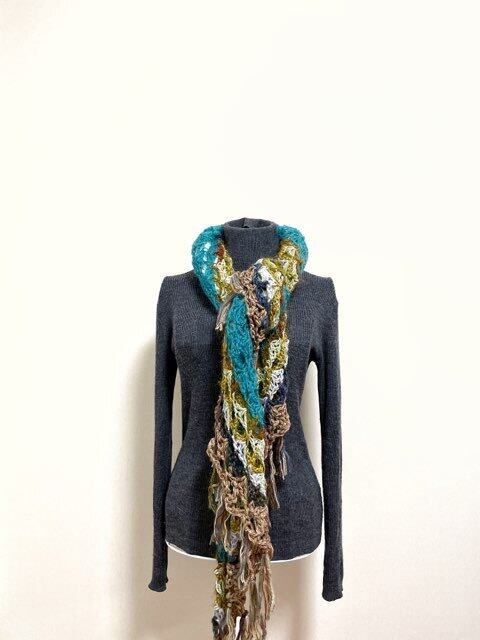 チクチクしにくい様々な素材やカラーを使って仕上げたカラフルなストールです。