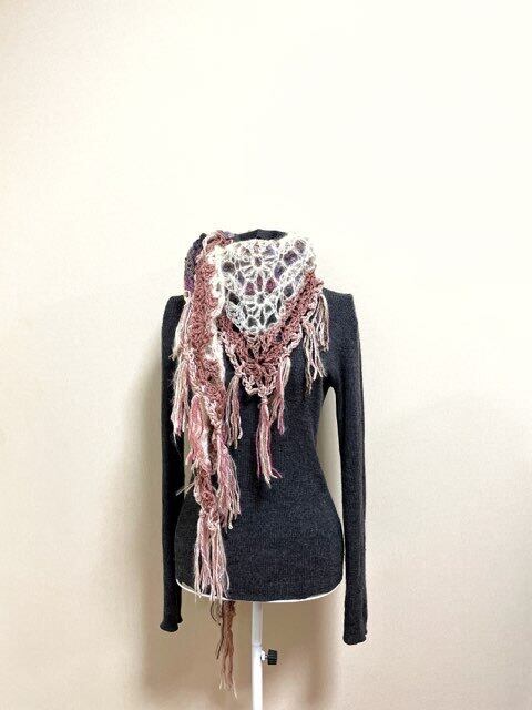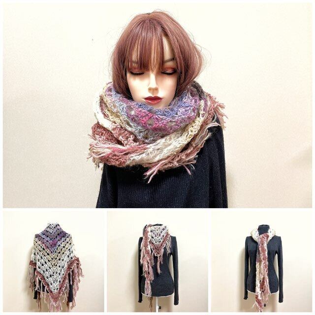 肌触りに拘り、カラフルに仕上げたふんわり柔らかく暖かい三角ストールです。