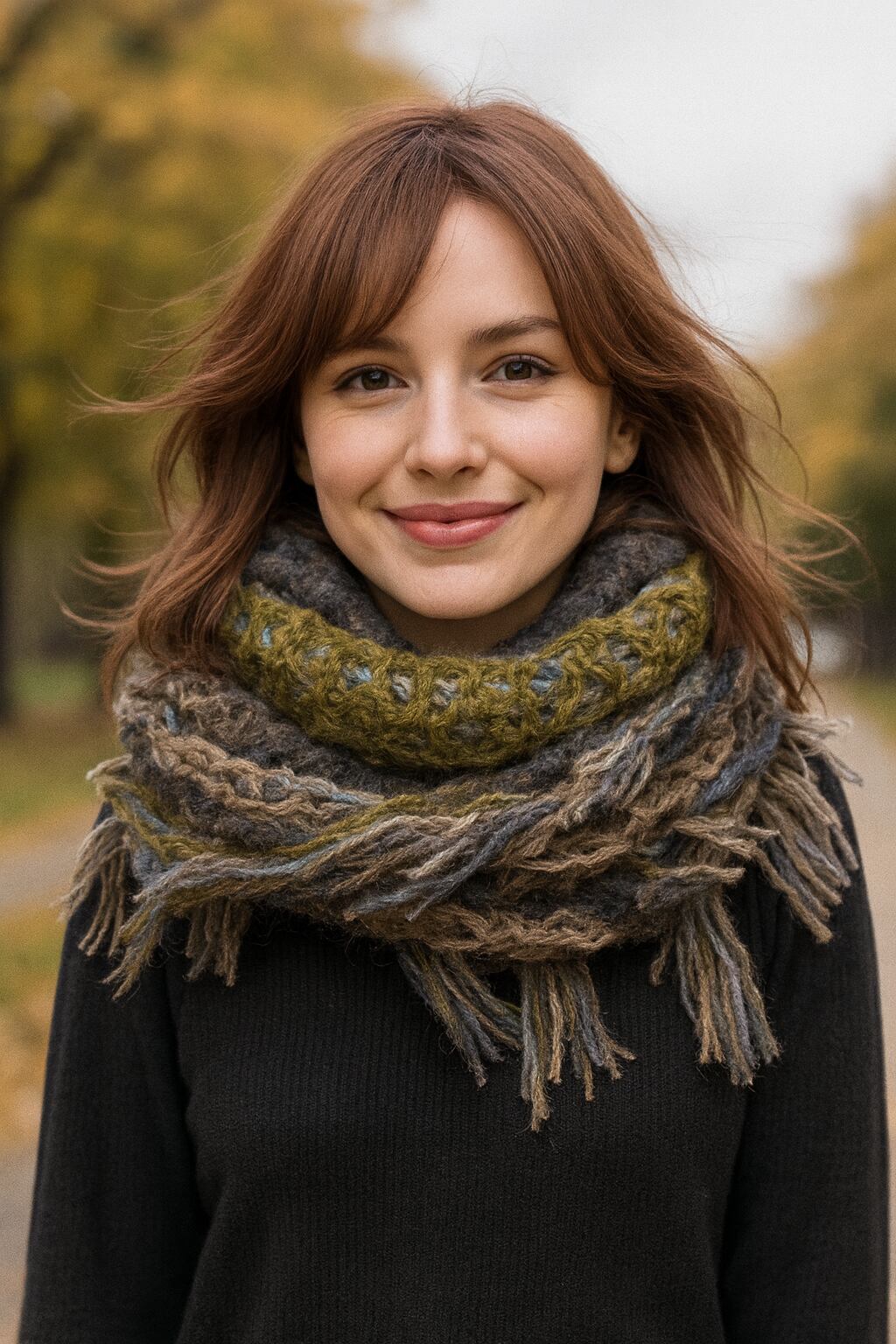 巻き方で表情が変わり、顔写りを明るくしてくれます。アクセントカラーを生かした落ち着いた配色で、様々なファッションに合わせやすいです。