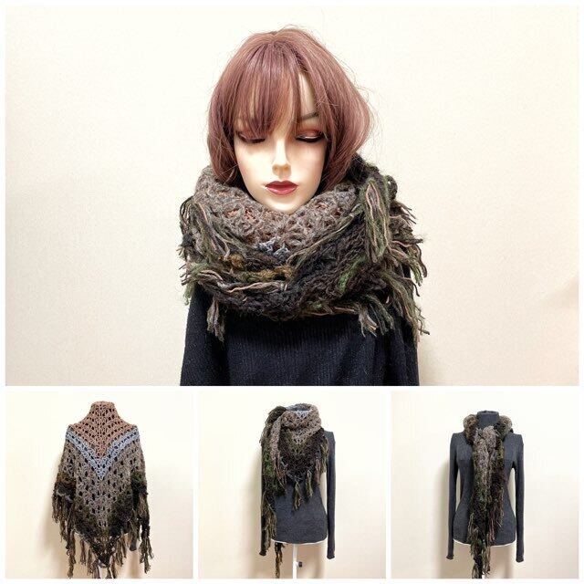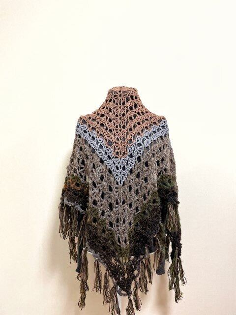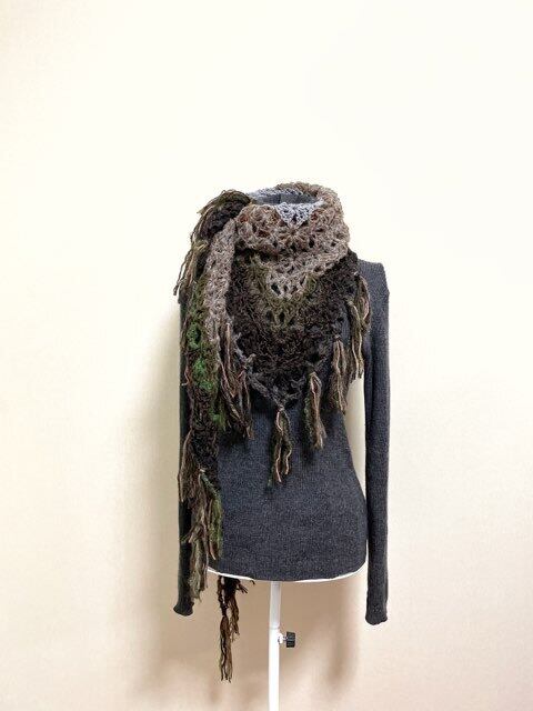 肌触りと配色バランスに拘ったふんわり柔らかく暖かい三角ストールです。