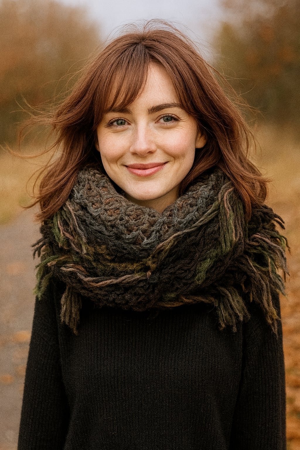 巻き方で表情が変わり、顔写りを明るくしてくれます。アクセントカラーを生かした落ち着いた配色で、様々なファッションに合わせやすいアイテムです。