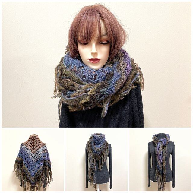 肌触りと配色バランスに拘ったふんわり柔らかく暖かい三角ストールです。