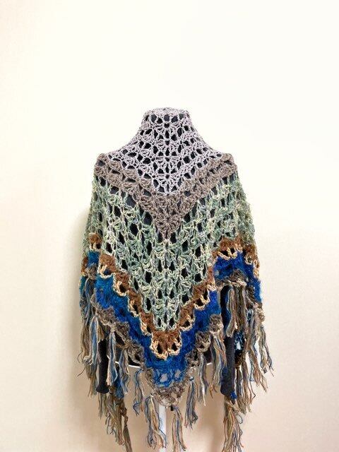 肌触りと配色バランスに拘ったふんわり柔らかく暖かい三角ストールです。