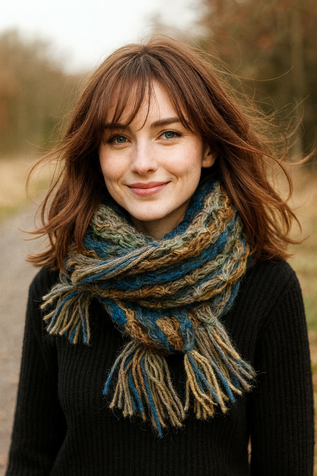 巻き方で表情が変わり、顔写りを明るくしてくれます。アクセントカラーを生かした落ち着いた配色で、様々なファッションに合わせやすいアイテムです。