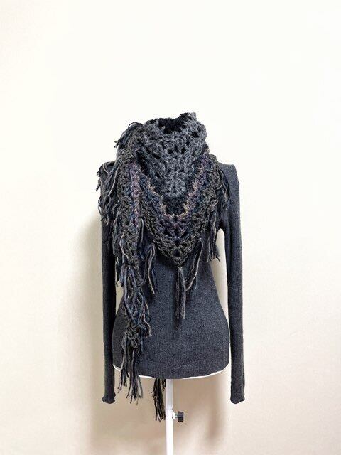 肌触りと配色バランスに拘ったふんわり柔らかく暖かい三角ストールです。