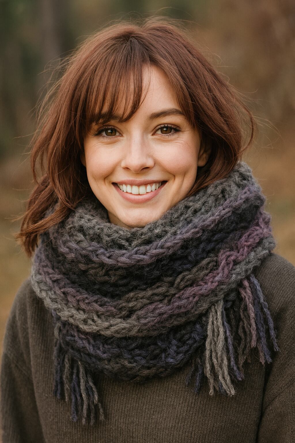 巻き方で表情が変わり、顔写りを明るくしてくれます。アクセントカラーを生かした落ち着いた配色で、様々なファッションに合わせやすいアイテムです。