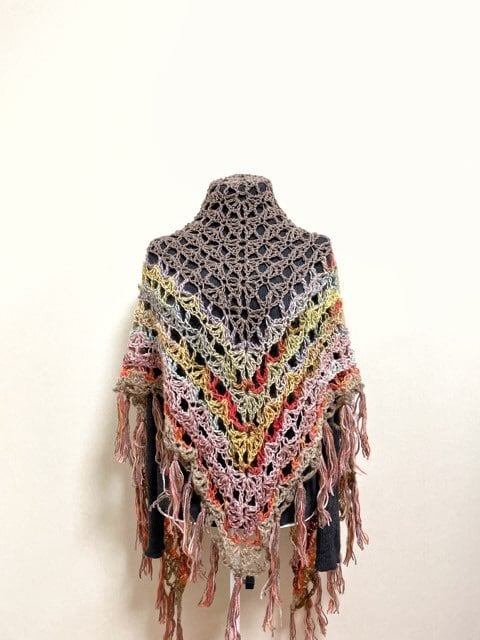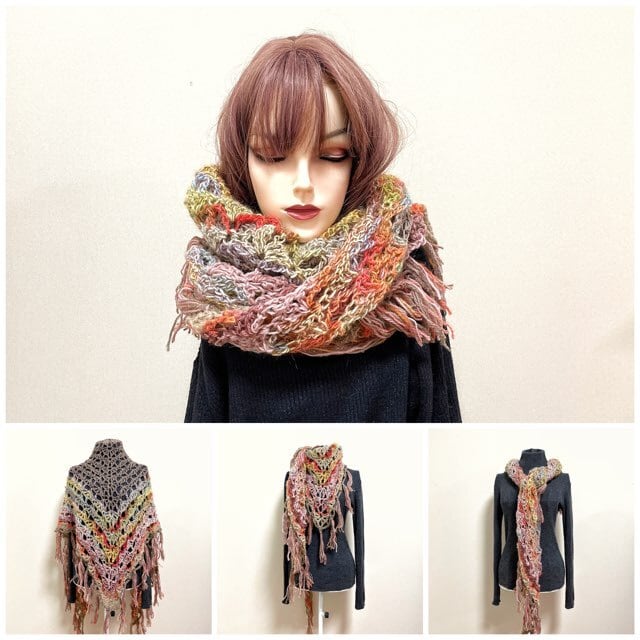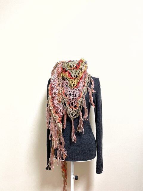 肌触りと配色バランスに拘ったふんわり柔らかく暖かい三角ストールです。