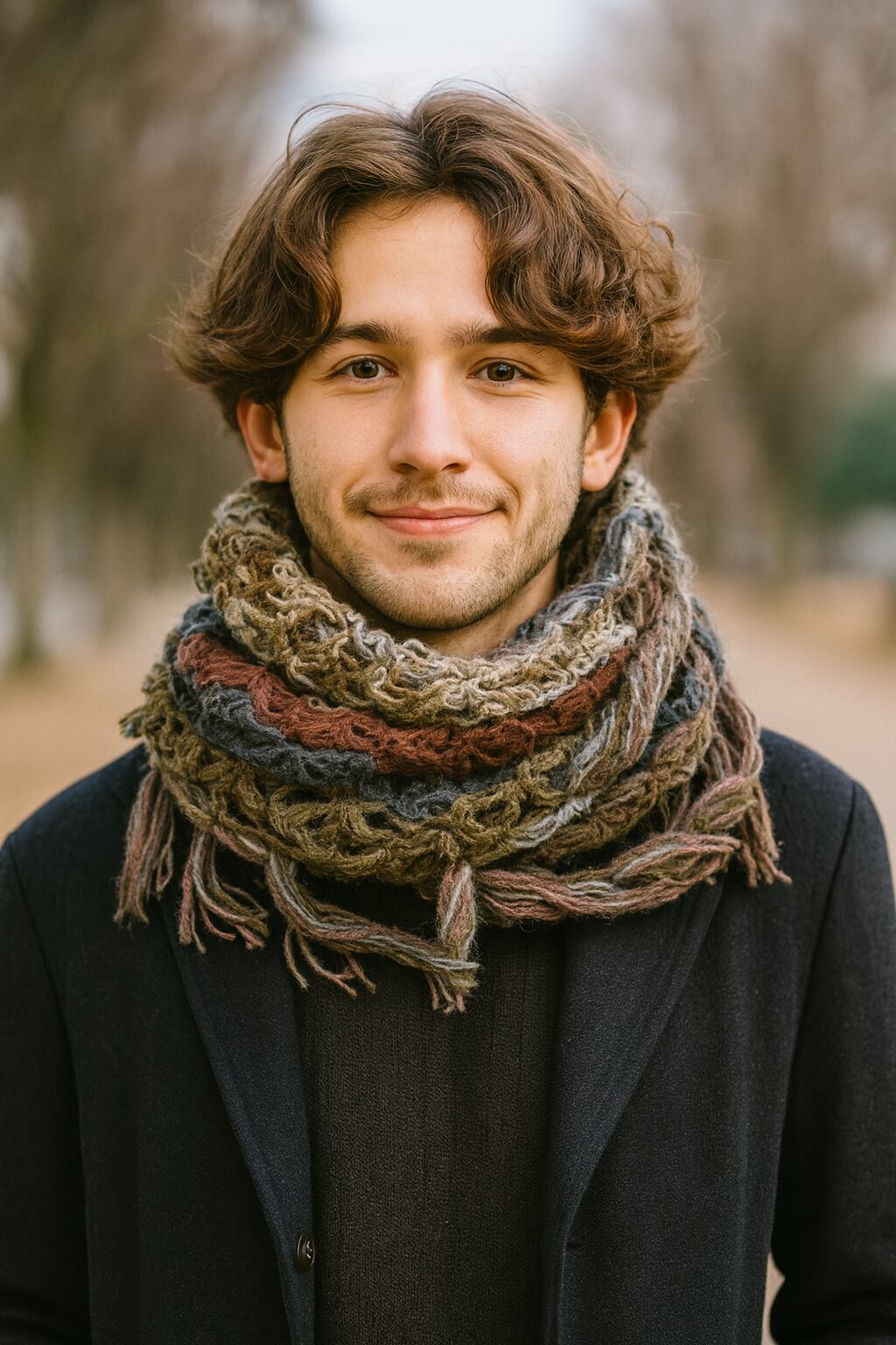 巻き方で表情が変わり、顔写りを明るくしてくれます。アクセントカラーを生かした落ち着いた配色で、様々なファッションに合わせやすいアイテムです。