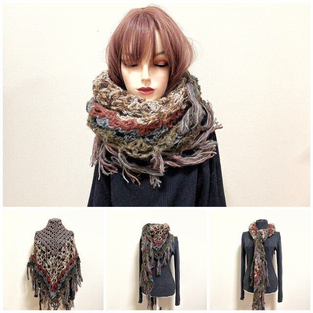 肌触りと配色バランスに拘ったふんわり柔らかく暖かい三角ストールです。