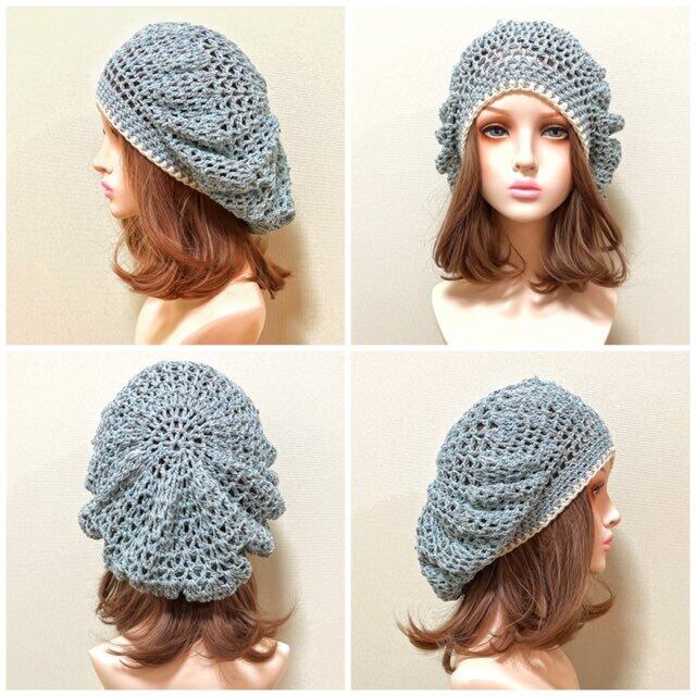#ニット帽#帽子#ベレー帽#サマーニット帽#ニット#手編み#オリジナル#春#夏#秋