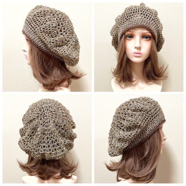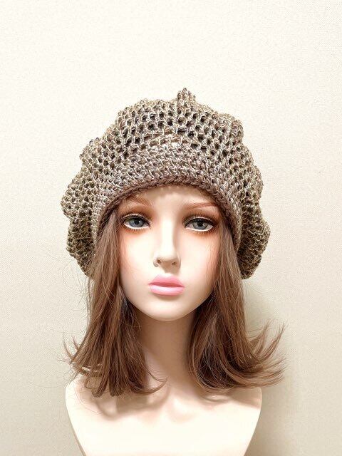 細い冬糸と夏糸を使用しています。網模様なので、通気性は良いです。ゆったり被れます。