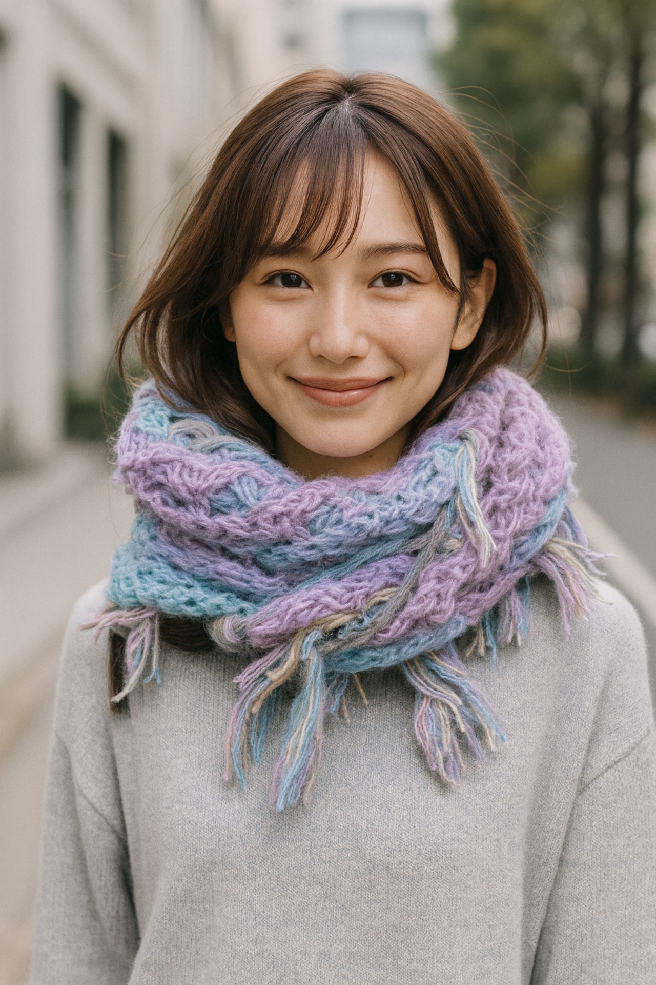 #ストール#マフラー#ニット#手編み#ハンドメイド#防寒#秋#冬