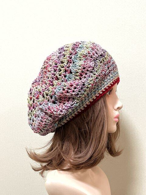 #ニット帽#帽子#ベレー帽#サマーニット帽#ニット#手編み#オリジナル#春#夏#秋