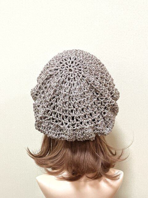 夏糸と冬糸を使用しています。網模様なので、通気性は良いです。ゆったり被れます。