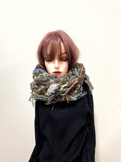 チクチクしにくい様々な素材やカラーを使って仕上げたカラフルなストールです。